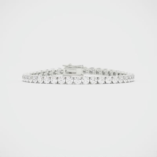 Add a touch of timeless elegance to your wrist with this exquisite moissanite tennis bracelet. Featuring a continuous line of round-cut moissanite stones, this bracelet sparkles with unmatched fire. The stones are securely set, ensuring both durability and a sleek, sophisticated look. This versatile bracelet is perfect for any occasion, whether you’re dressing up for a formal event or adding a bit of sparkle to your everyday attire. Its classic design makes it a timeless piece that will never go out of style. Choose this moissanite tennis bracelet for a luxurious and enduring addition to your jewelry collection. Read More Read Less