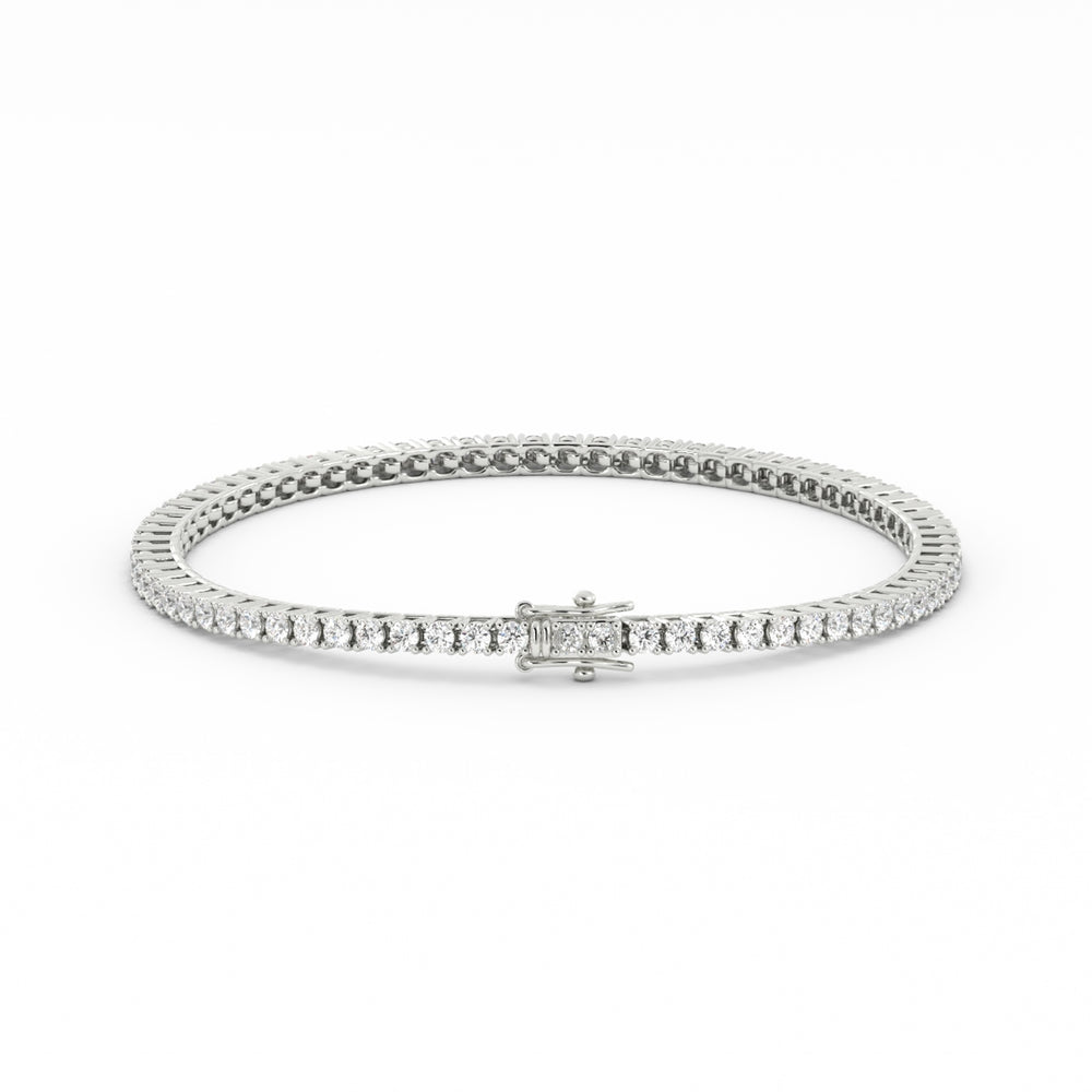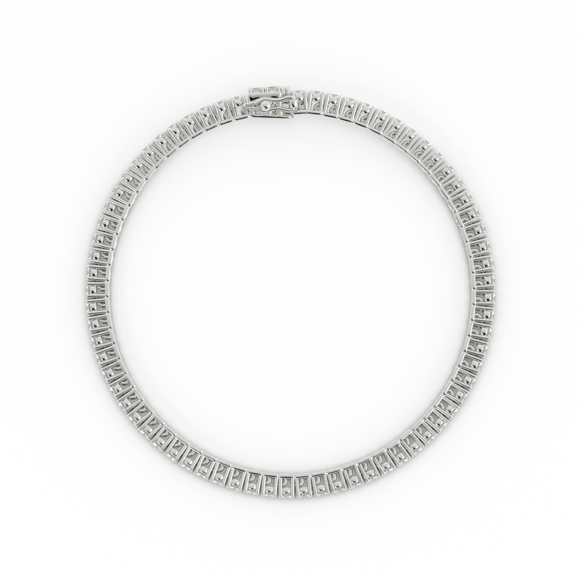 Crafted in lustrous 925 sterling silver, this exquisite tennis bracelet redefines timeless elegance. A continuous row of brilliant round-cut moissanite stones wraps around your wrist, creating a dazzling effect that catches every ray of light. Whether worn alone or paired with other accessories, this bracelet exudes sophistication. Read More Read Less