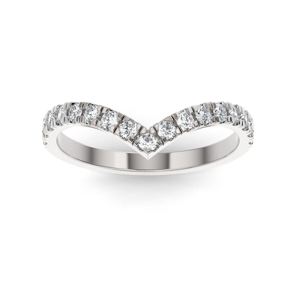 Gorgeous round diamonds meet to a point on this beautiful 18k white gold contour band. This band is perfect for accenting an engagement ring or stack with other rings. Read More Read Less