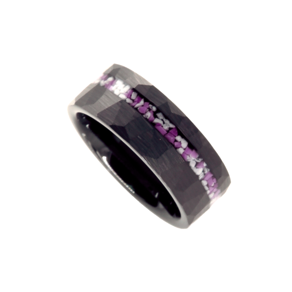 brushed hammered inlay Tungsten Carbide Ring