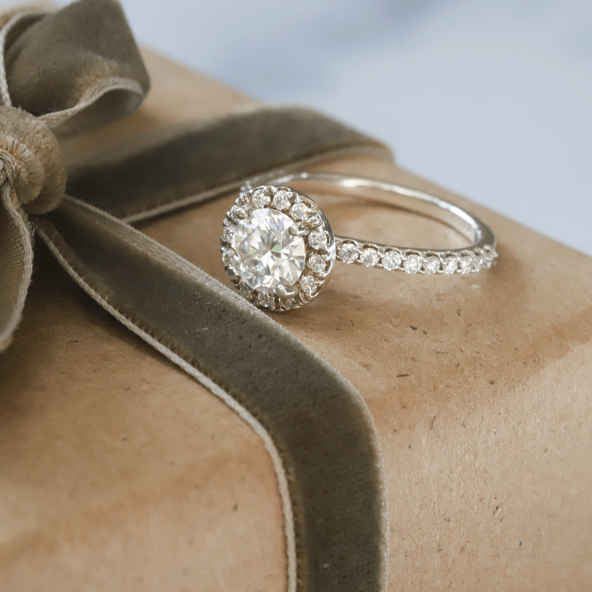 1.0ct Moissanite Pave Halo 14K White Gold Engagement Ring