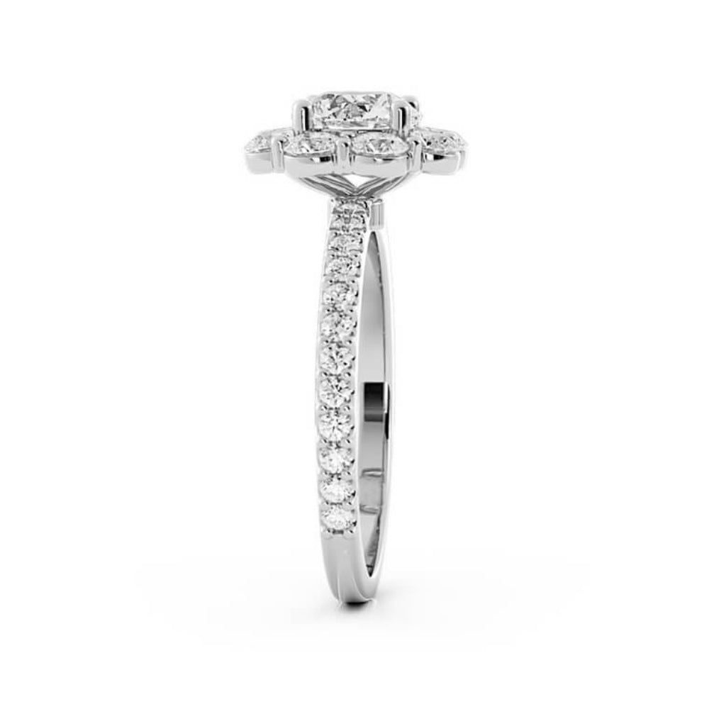 1.0ct Moissanite Round Halo 14K White Gold Engagement Ring