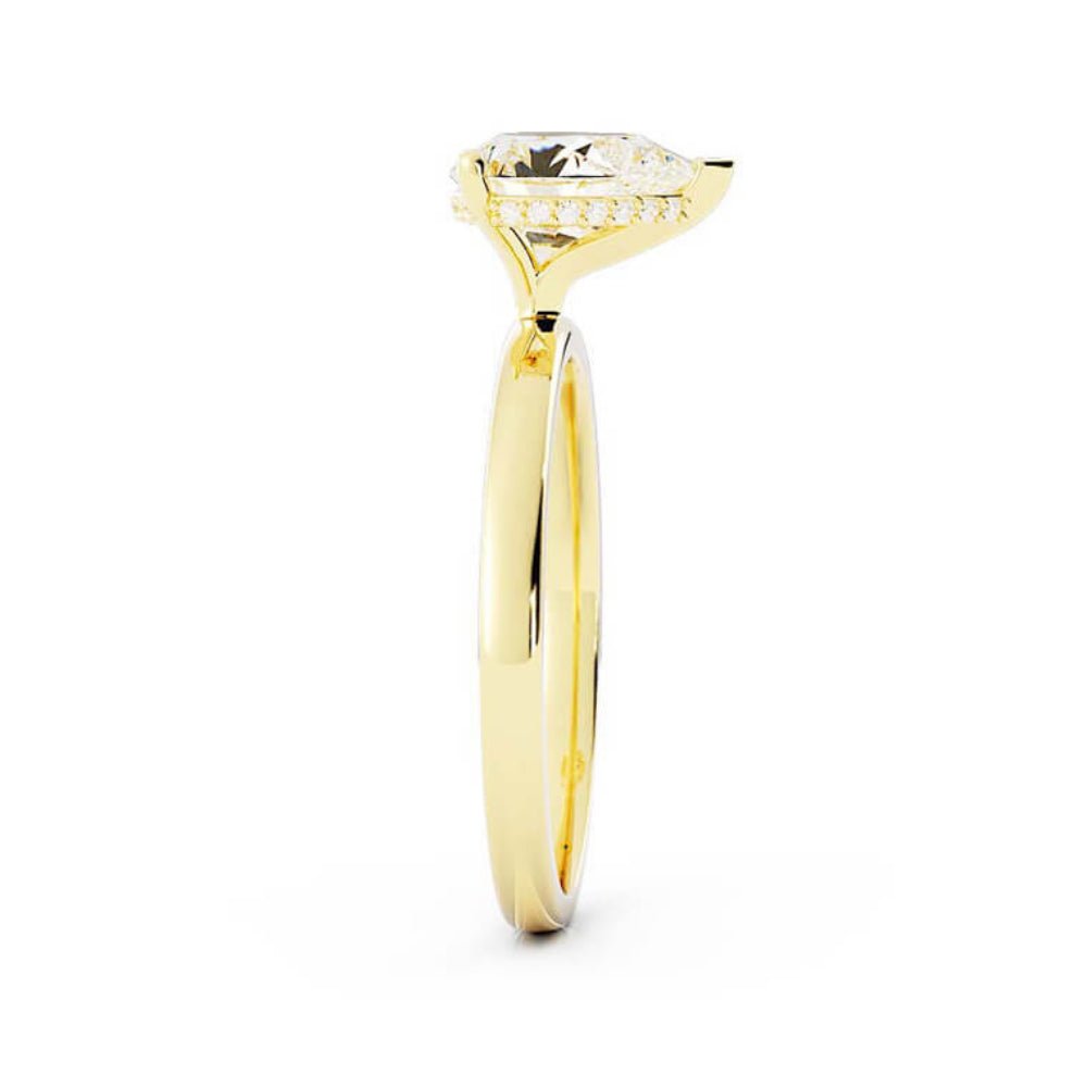 1.5ct Moissanite Pear Hidden Halo 14K Yellow Gold Engagement Ring