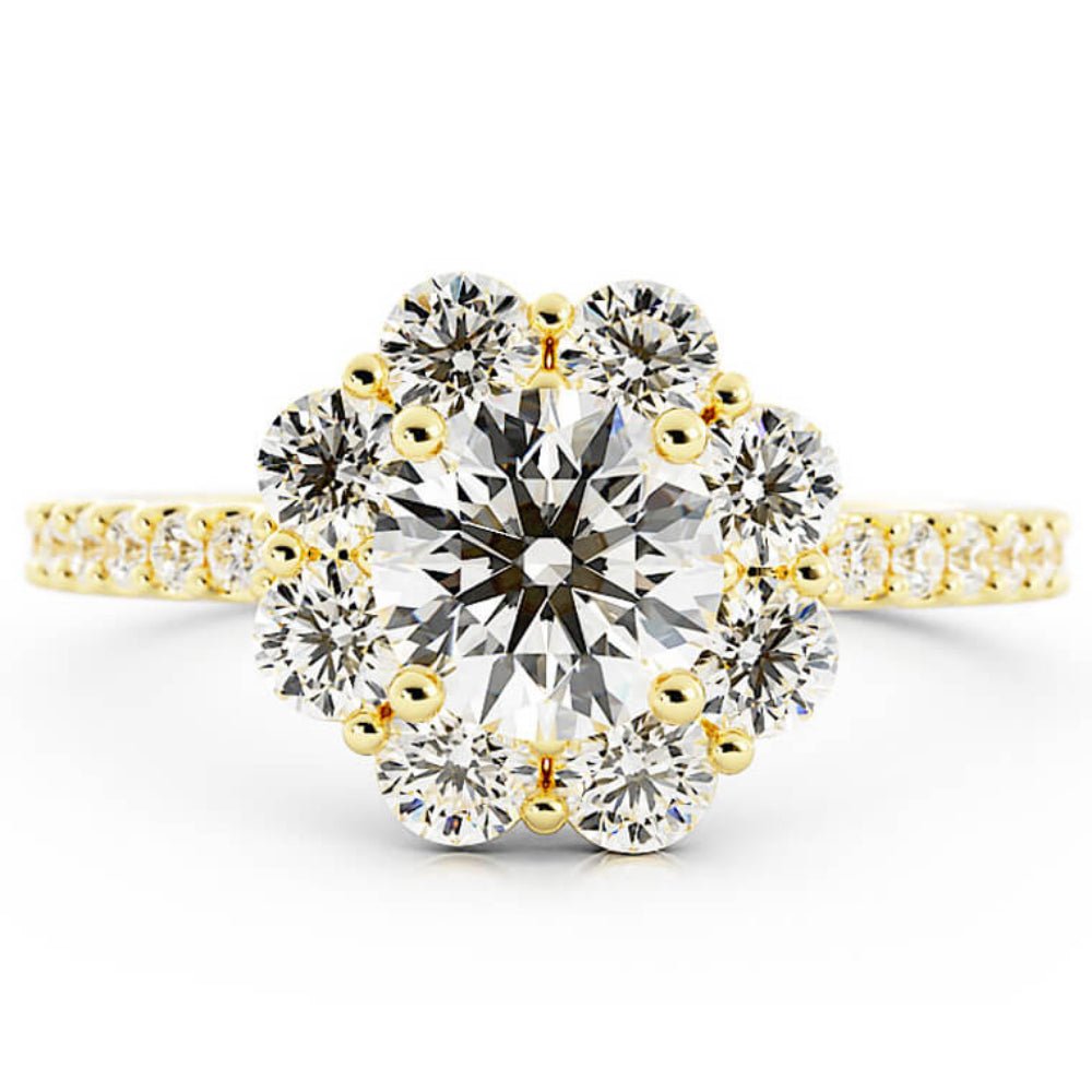 1.0ct Moissanite Pave Halo 14K Yellow Gold Engagement Ring