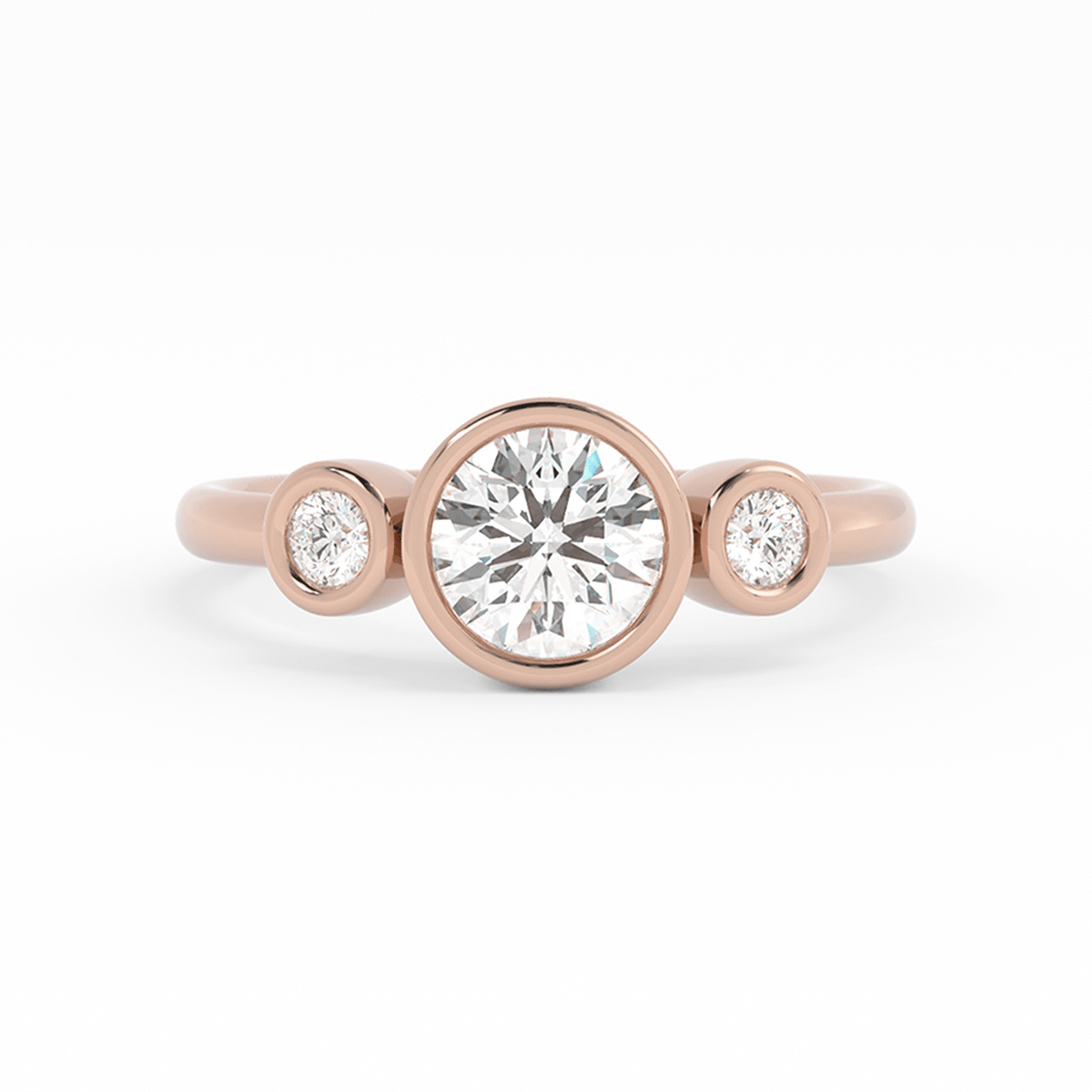 Three Stone Bezel 10K Rose Gold Engagement Ring
