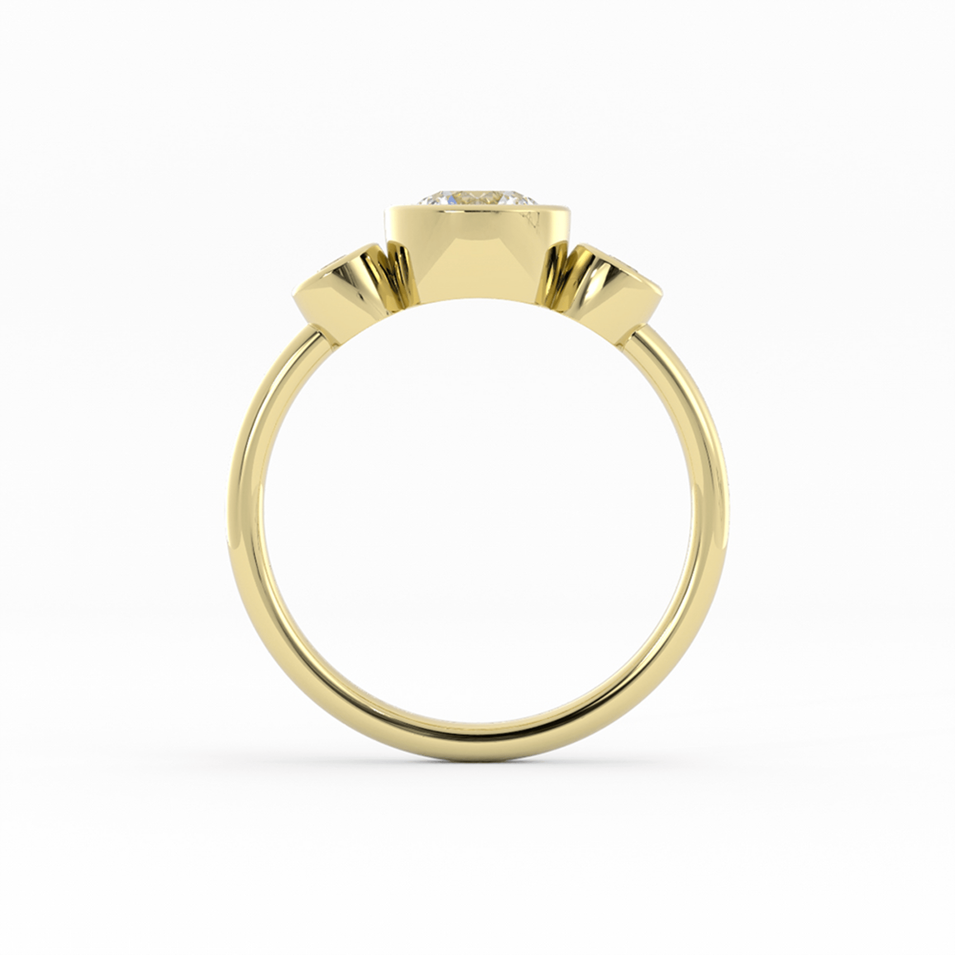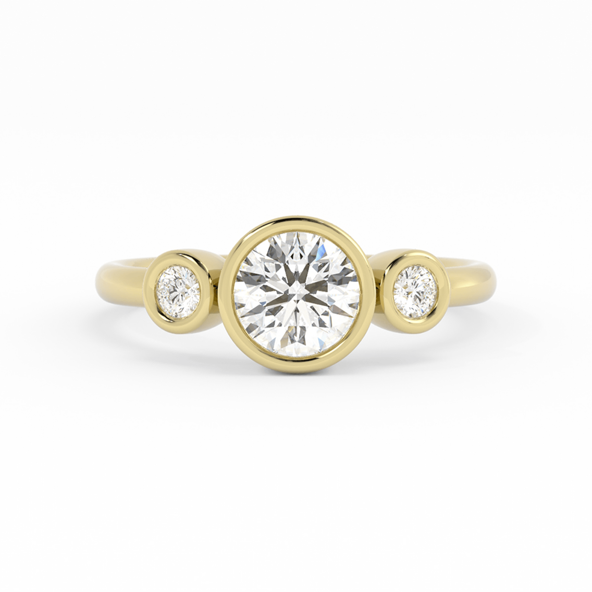 Three Stone Bezel 18K Yellow Gold Engagement Ring