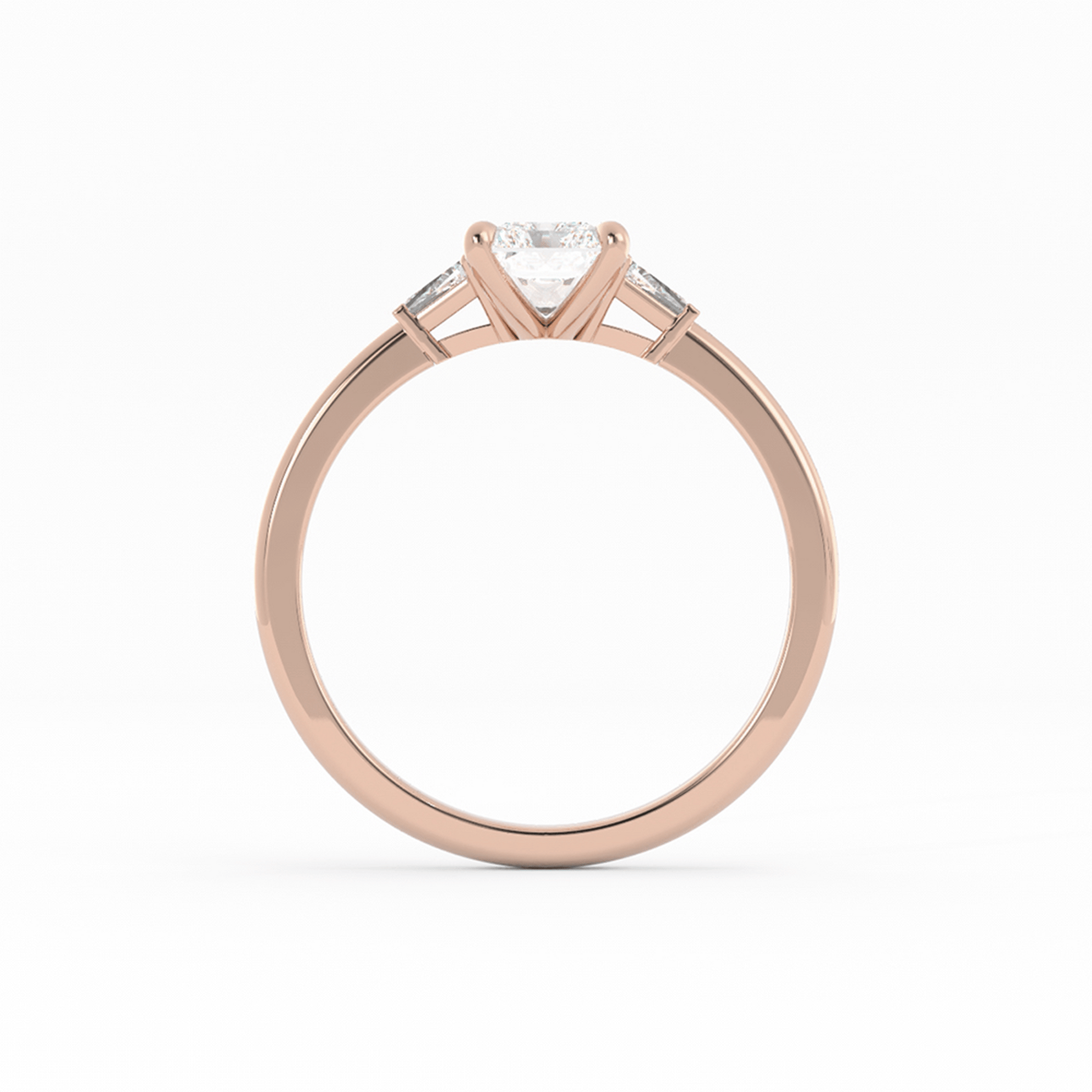 Timeless sophistication meets modern elegance in the Amelia Radiant and Tapered Baguette Lab-Grown Diamond Engagement Ring, a stunning design from the Olympia Collection. At its center, a dazzling 1ct radiant-cut lab-grown diamond is securely set with four claw prongs, showcasing its brilliance and distinct silhouette. Flanking the center stone, two tapered baguette lab-grown diamonds are set with sleek bar settings, adding a refined and graceful touch to this three-stone masterpiece.
