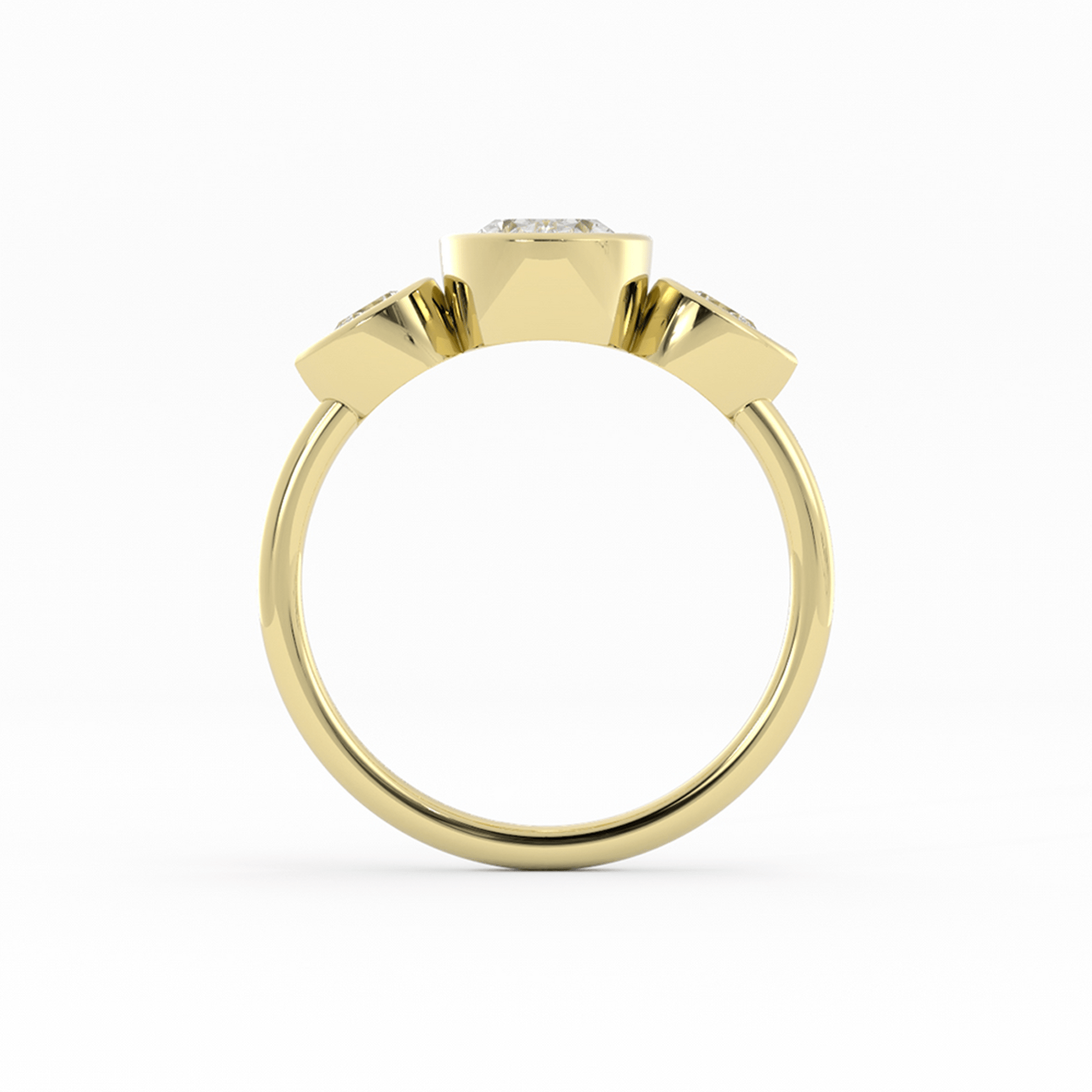 Each diamond is securely bezel set, offering a sleek, modern aesthetic while providing durability and comfort for everyday wear. The Anastasia ring's harmonious blend of shapes and clean lines makes it an ideal choice for those who appreciate refined design and sustainable luxury.