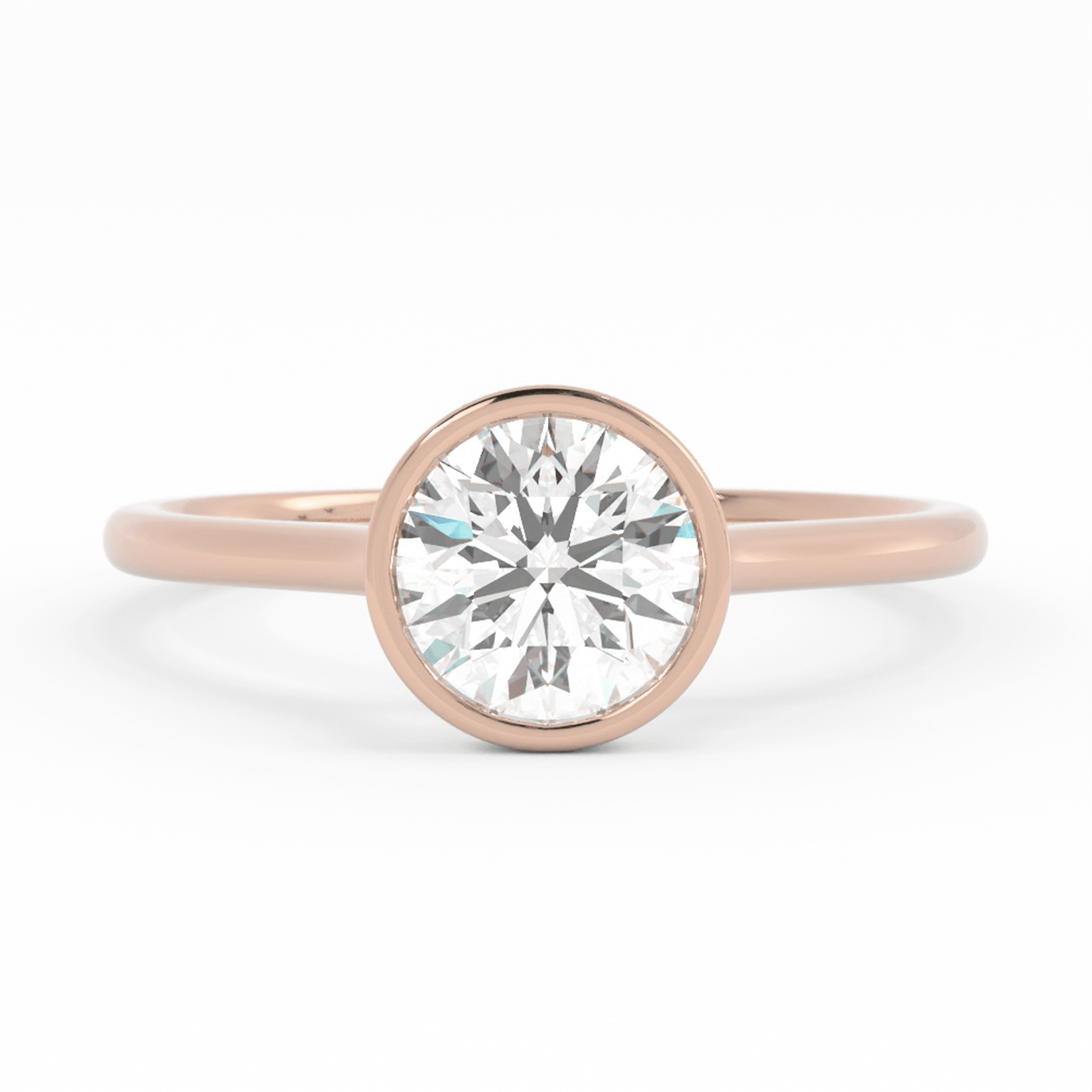 Bezel Set Solitaire Round 14K Rose Gold Ring