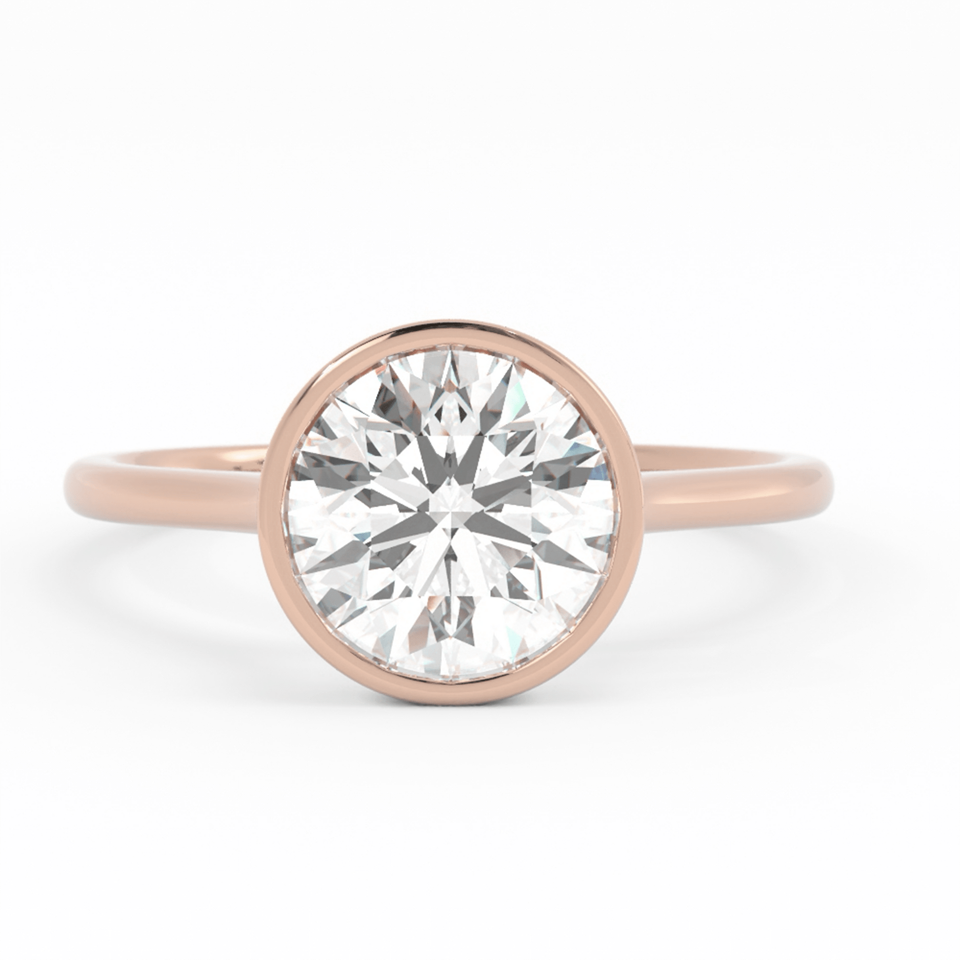 Bezel Set Solitaire Round 18K Rose Gold Ring