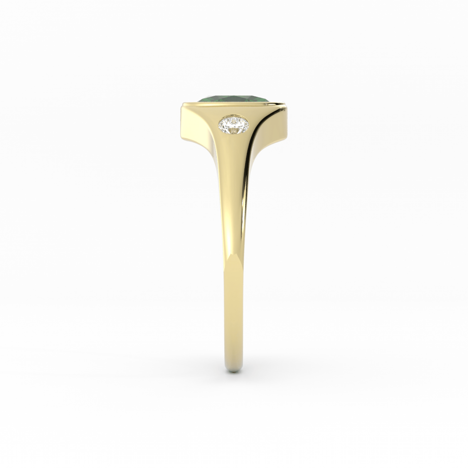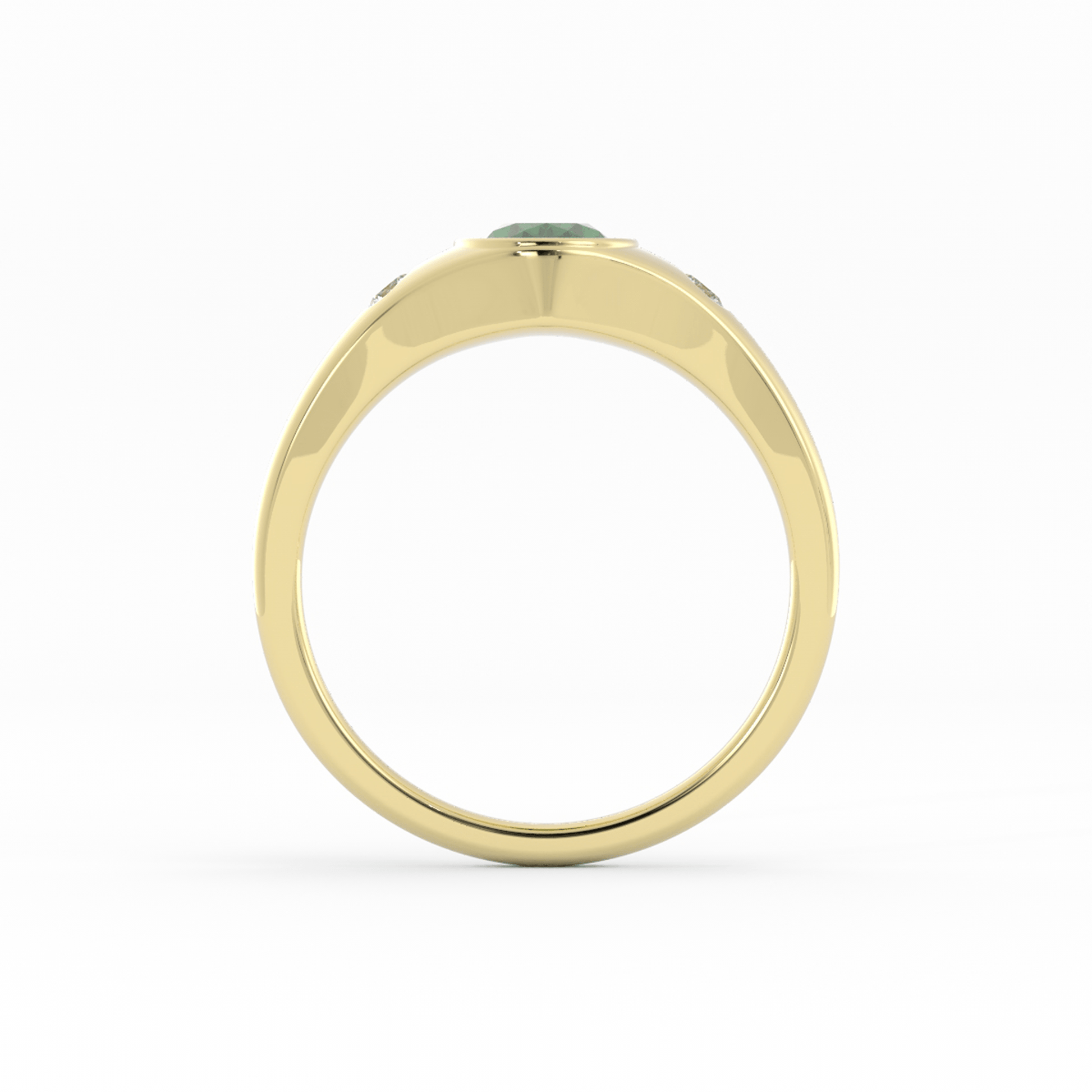 The signet-style band exudes modern sophistication, combining clean lines with a bold silhouette. Secure and durable, the settings make this ring perfect for everyday wear, while its ethically sourced emerald and lab-grown diamonds embody sustainable luxury without compromising on beauty or quality.