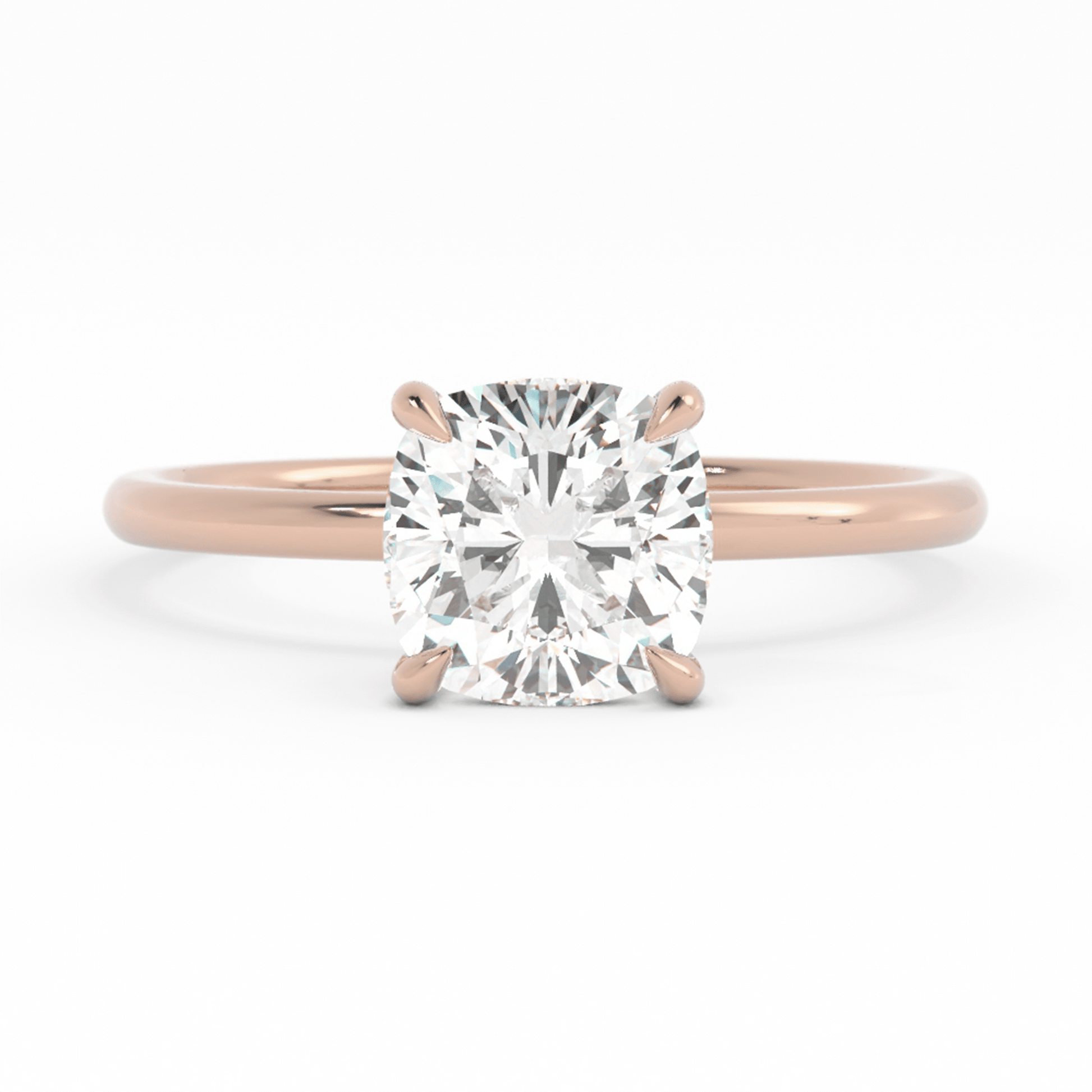 Claw Prong Solitaire Cushion 18K Rose Gold Ring