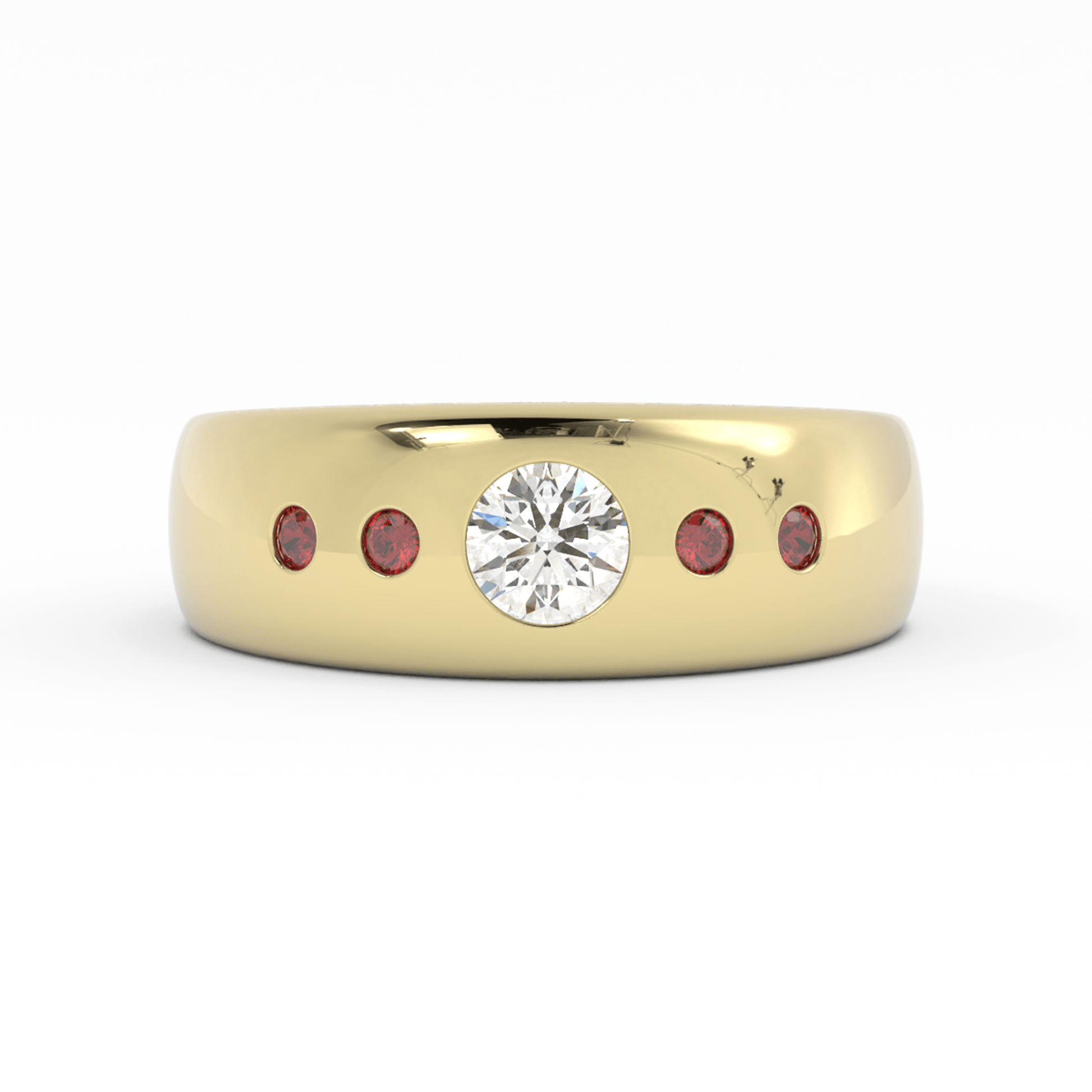 The flush settings enhance the ring’s bold silhouette, ensuring both durability and comfort for everyday wear. The combination of sparkling diamonds and vivid rubies creates a striking contrast, making the Ember ring a perfect choice for those who value individuality and elegance.