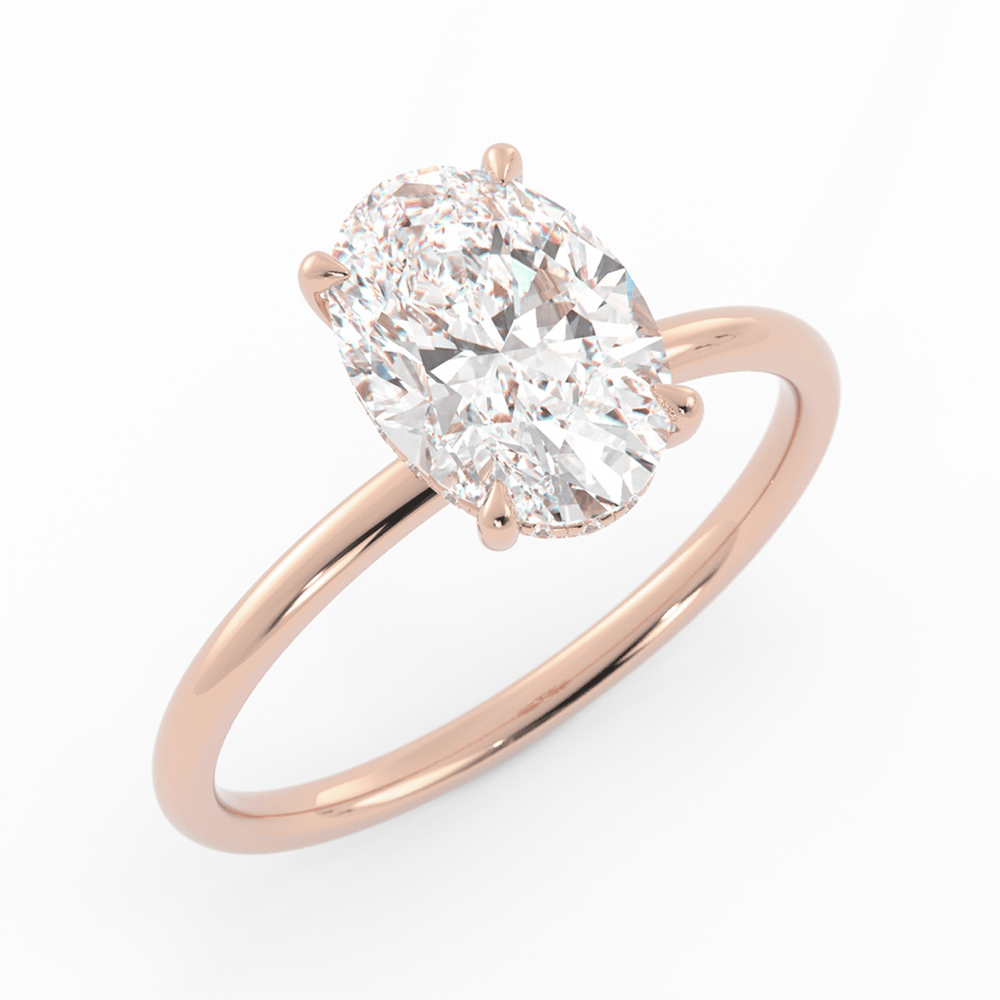 Beneath the center stone, a hidden halo of lab-grown diamonds adds a subtle yet dazzling touch, offering an extra layer of sparkle only revealed from certain angles. The sleek, minimalist band is designed for effortless stacking, making the Emma ring the perfect choice for pairing with wedding bands or other fine jewelry.