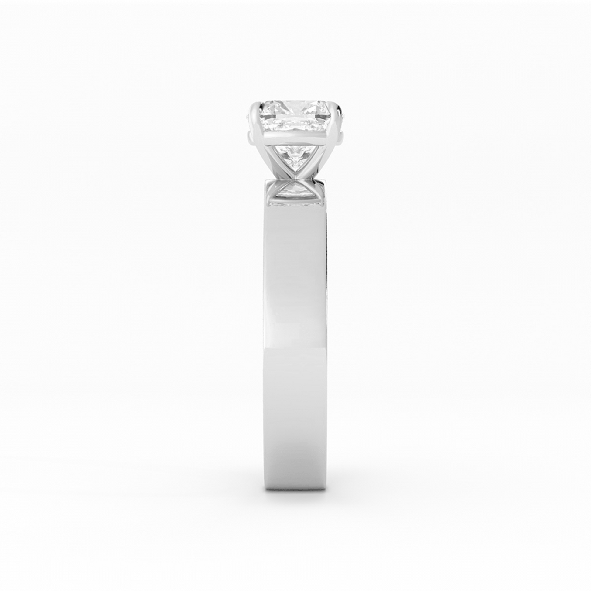 The 4mm flat band adds a modern, minimalist touch, creating a bold contrast to the delicate brilliance of the center stone. Designed for both durability and style, the Eve ring is a striking yet effortless choice for those who appreciate clean lines and timeless beauty.