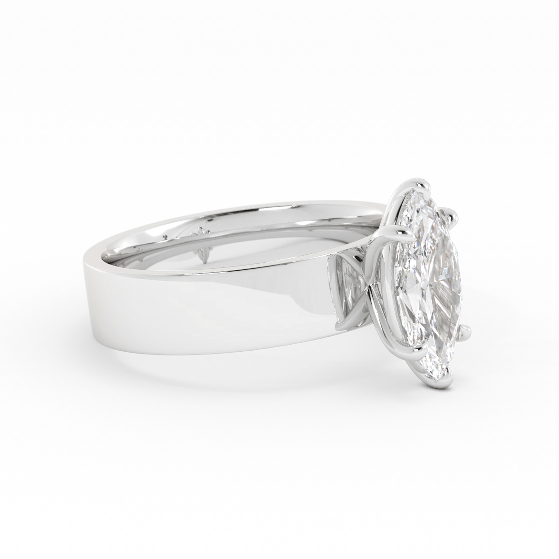 Six Claw Prong Solitaire 5mm Marquise 18K White Gold Ring