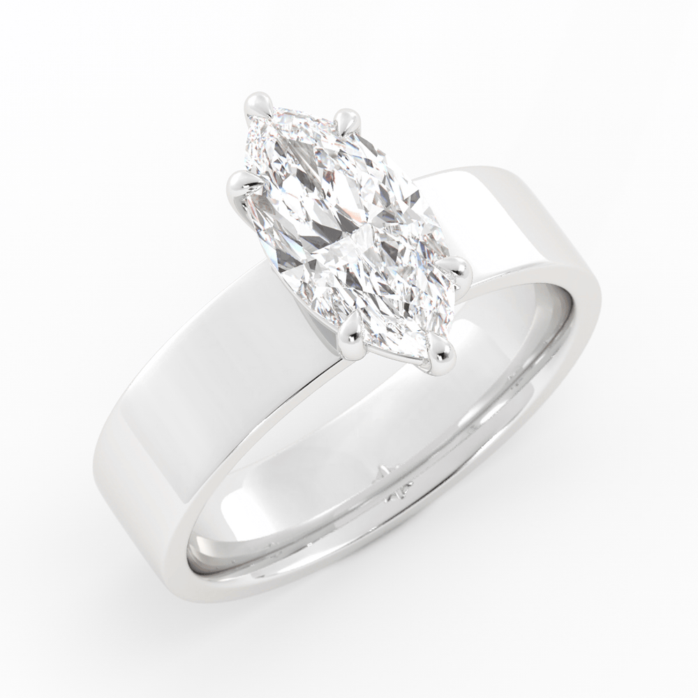 The 5mm flat band adds a modern, architectural touch, balancing the diamond’s graceful curves with a bold, contemporary feel. Designed for those who appreciate clean lines and strong design, the Grace ring is a true statement piece—refined, confident, and effortlessly stunning.