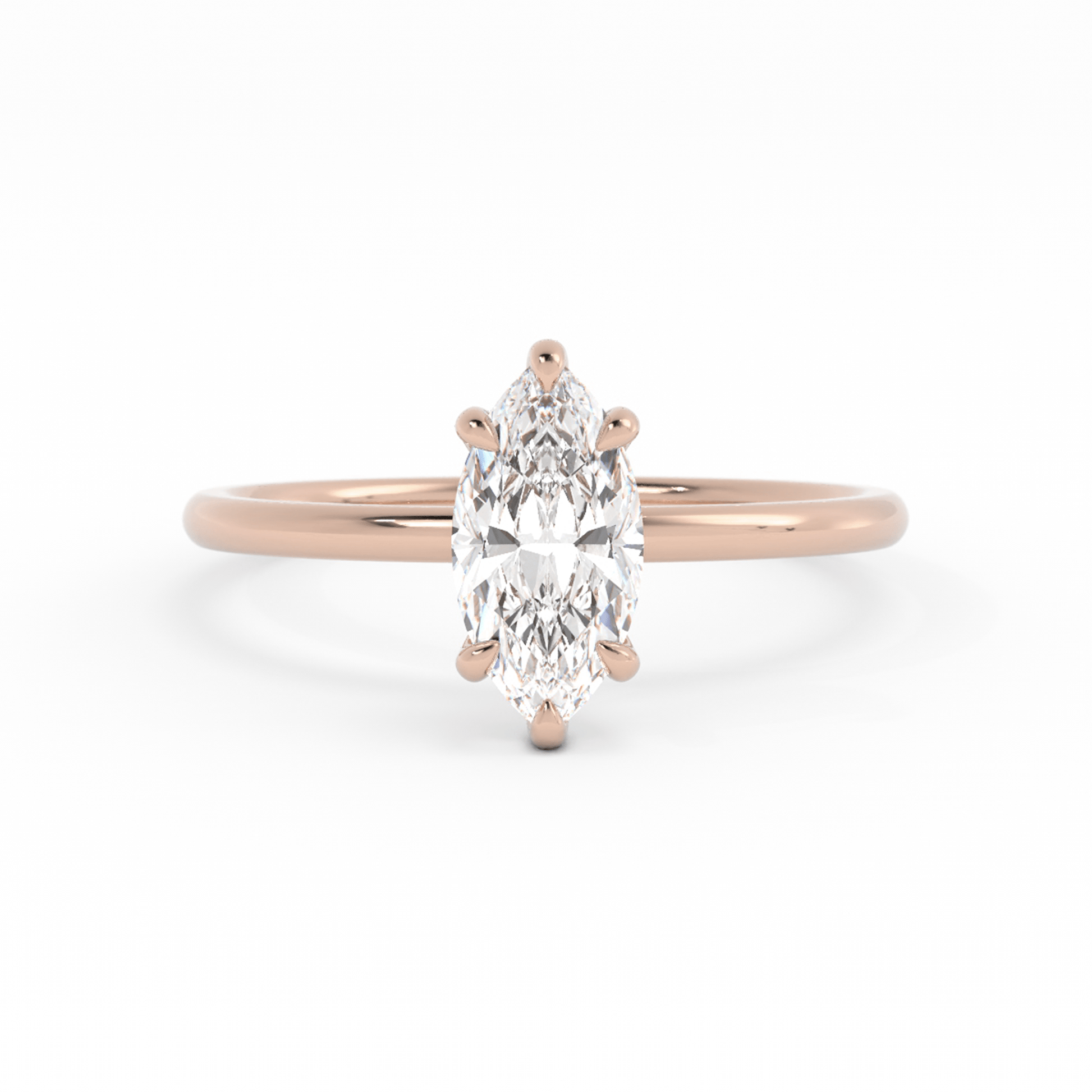 Six Claw Prong Solitaire Marquise 18K Rose Gold Ring