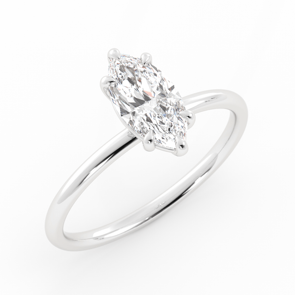 Sleek, sophisticated, and effortlessly elegant, the Ivy 1ct Marquise Lab-Grown Diamond Engagement Ring from the Simply Solitaire Collection is designed for those who appreciate timeless beauty with a modern touch. At its center, a striking 1-carat marquise-shaped lab-grown diamond is set with six delicate claw prongs, accentuating its elongated silhouette and maximizing brilliance.