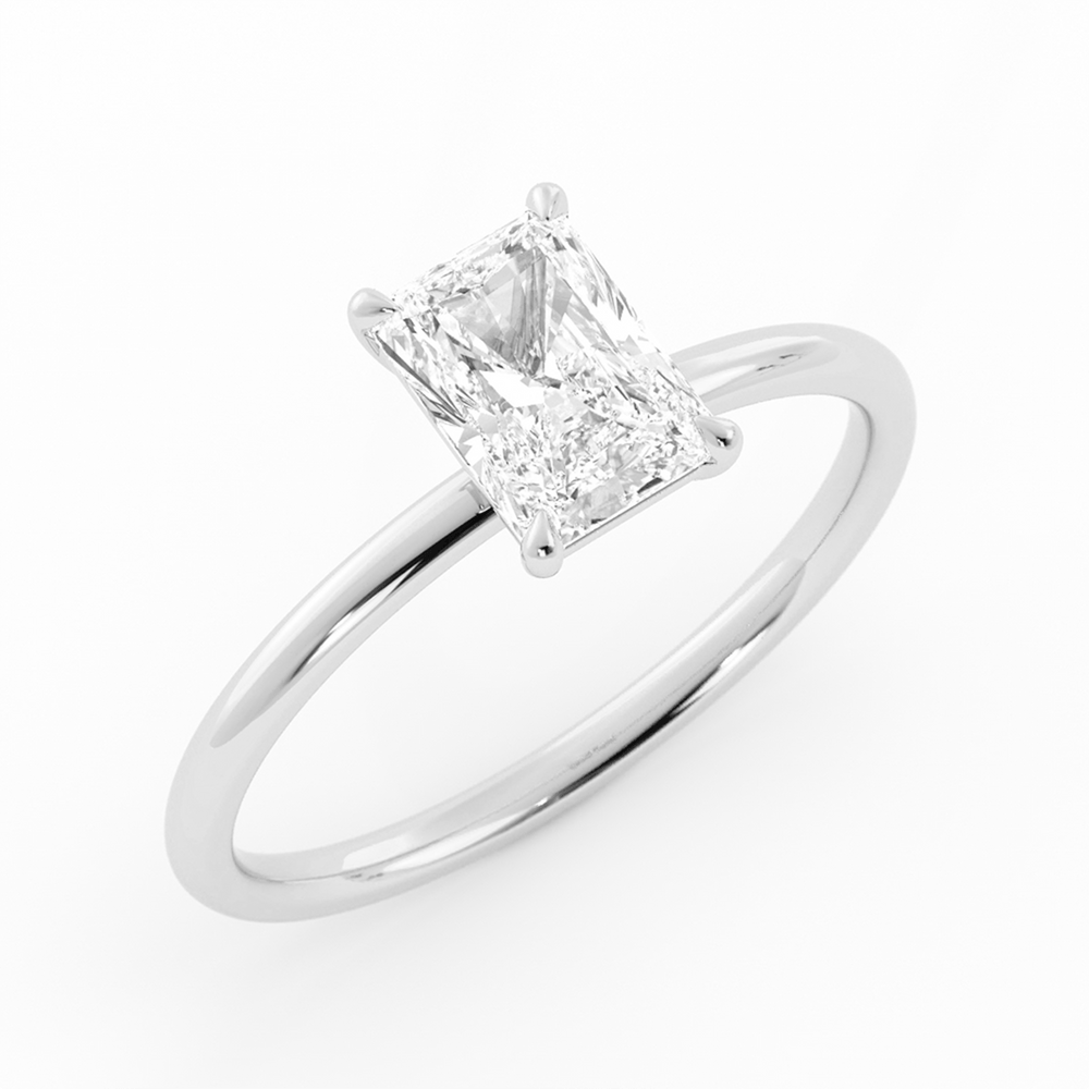 Bold brilliance meets refined elegance in the Jade 1ct Radiant-Cut Lab-Grown Diamond Engagement Ring from the Simply Solitaire Collection. Showcasing a stunning 1-carat radiant-cut lab-grown diamond, this ring is designed to maximize sparkle with its beautifully faceted shape. Secured with four delicate claw prongs, the center stone is elevated, allowing light to enhance its fire and brilliance.