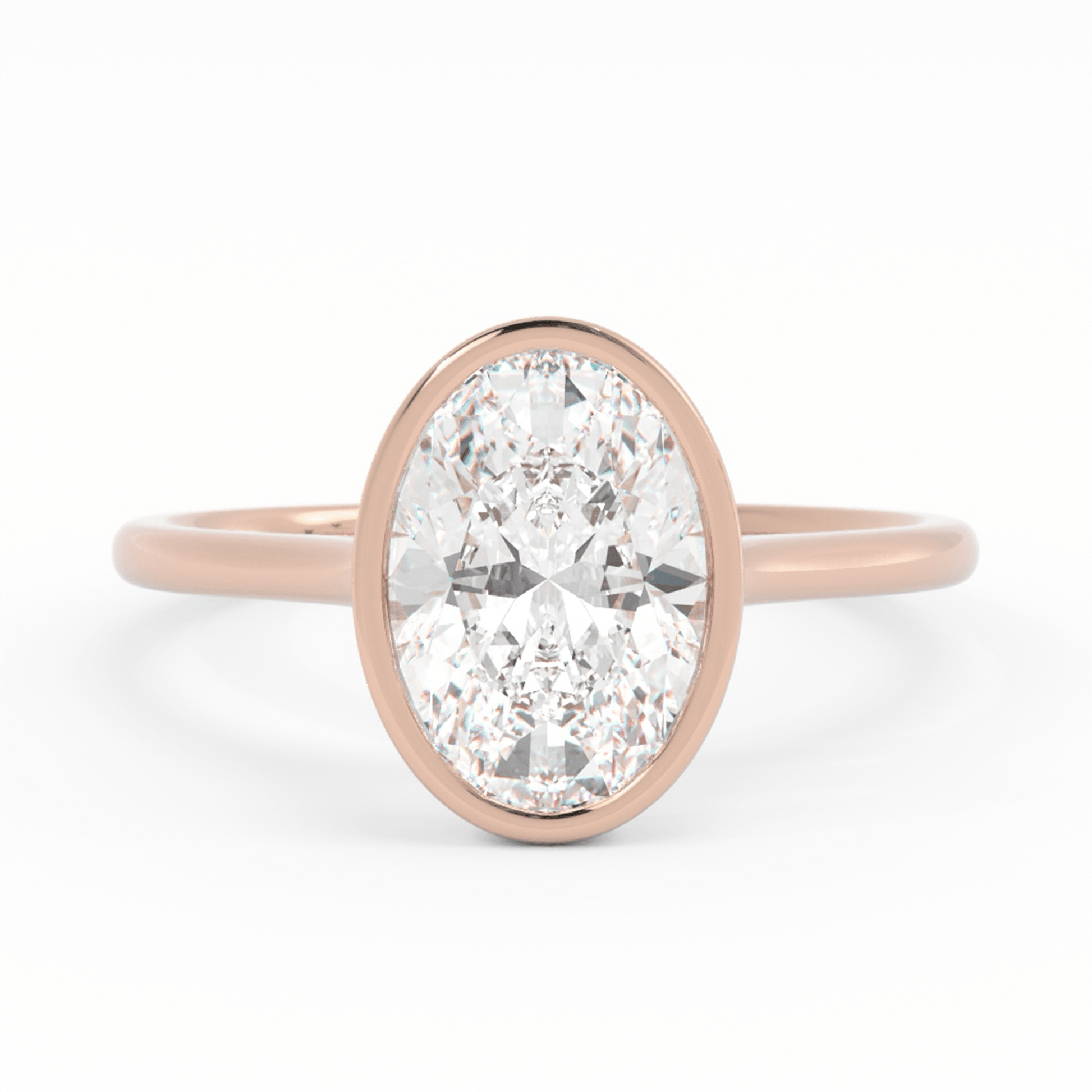 Bezel Set Solitaire Oval 18K Rose Gold Ring