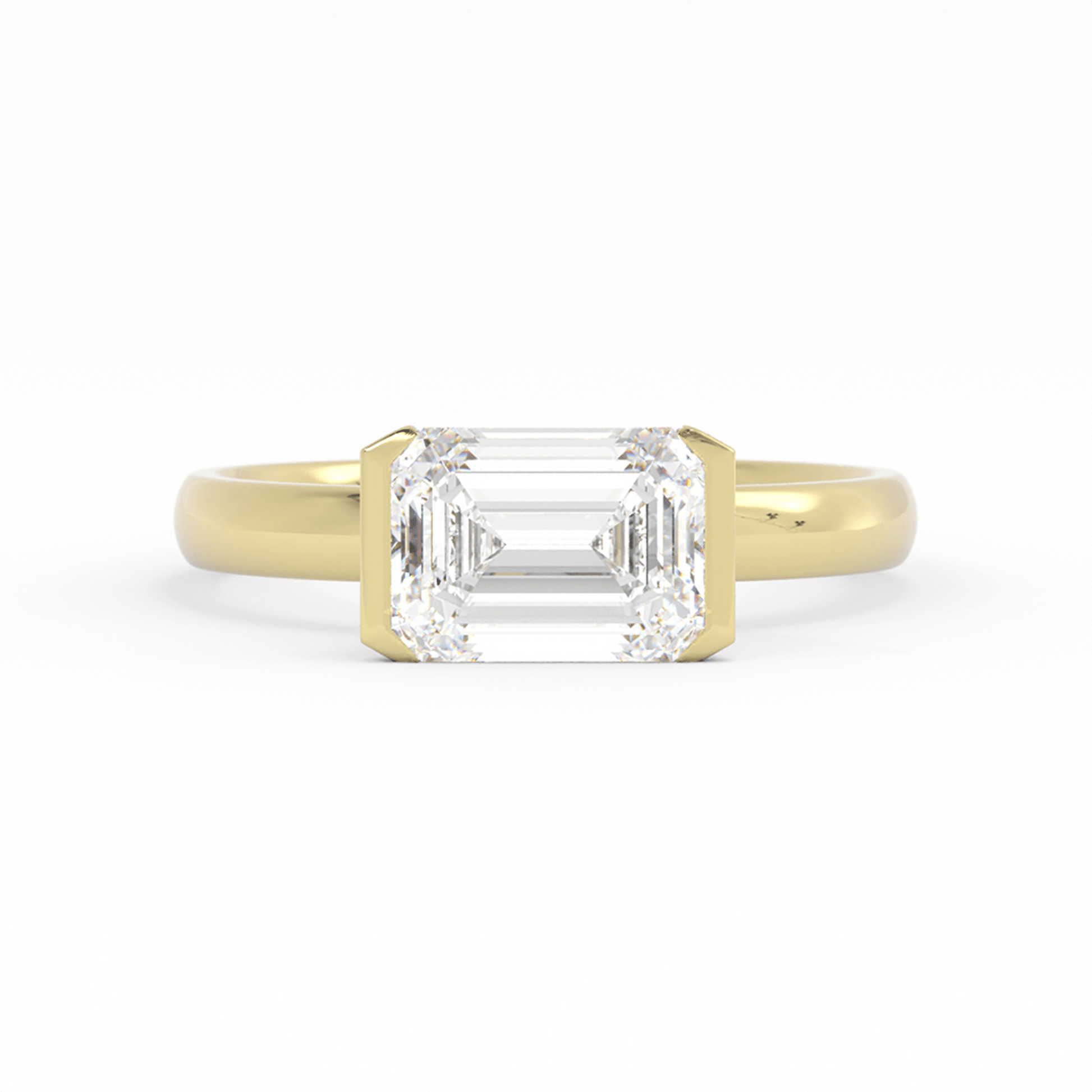 Sleek, modern, and effortlessly sophisticated, the Leah 2ct East-West Emerald-Cut Lab-Grown Diamond Engagement Ring from the Simply Solitaire Collection is a bold take on classic elegance. Featuring a stunning 2-carat emerald-cut lab-grown diamond, this ring showcases the diamond in an east-west orientation, creating a contemporary and eye-catching silhouette. The open bezel setting enhances the stone’s clean lines while allowing light to pass through, maximizing its brilliance and depth.