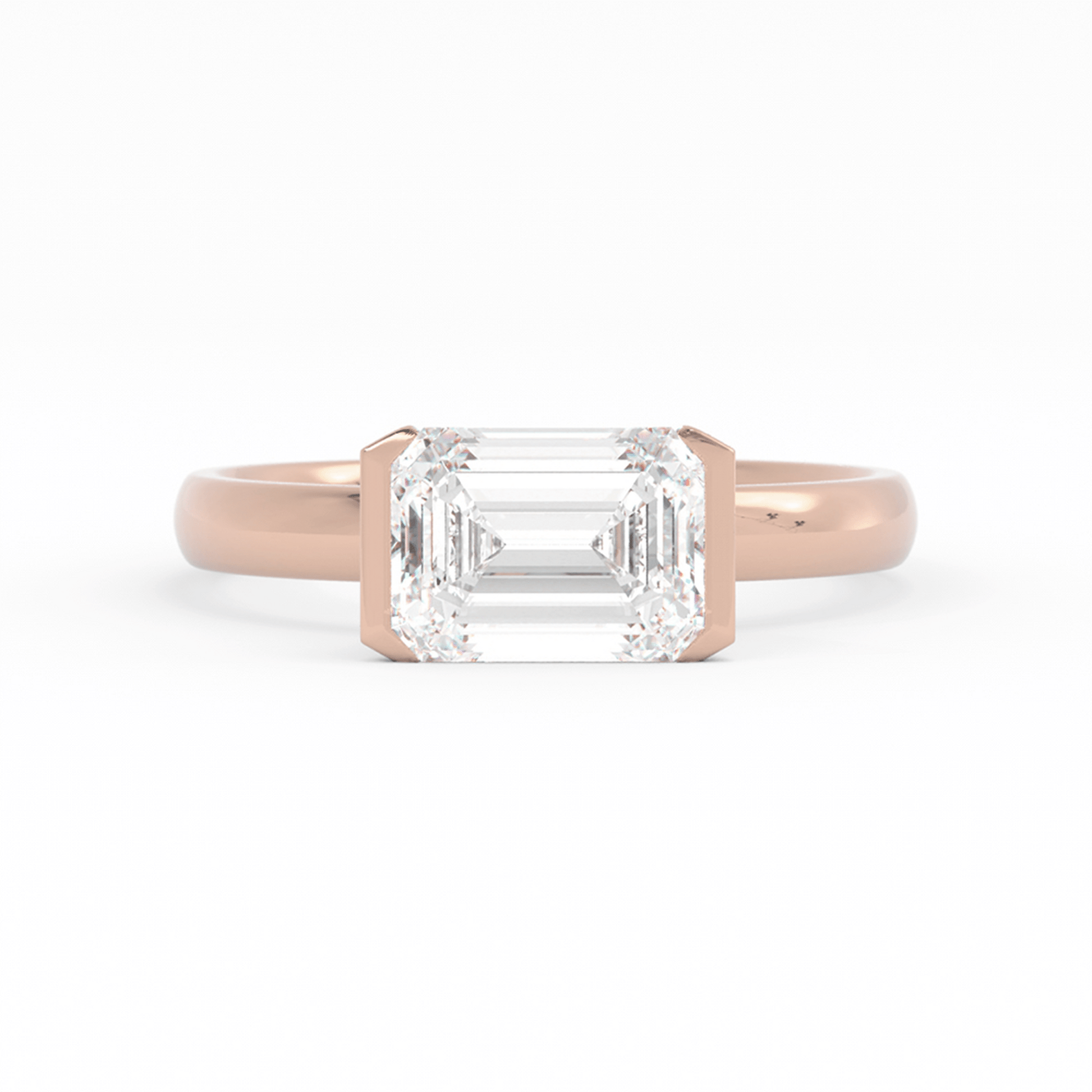 Open Bezel Solitaire Emerald Cut 14K Rose Gold Ring