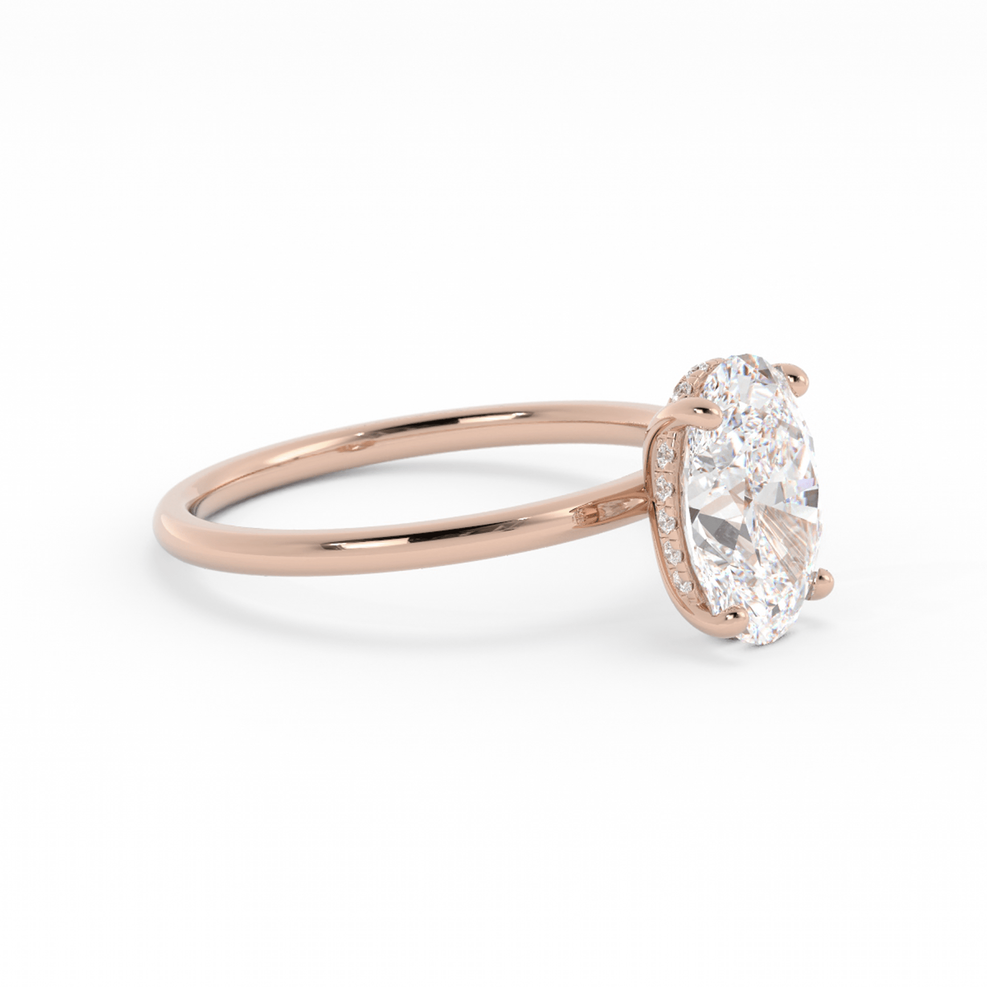 Hidden Halo Solitaire Oval 18K Rose Gold Ring