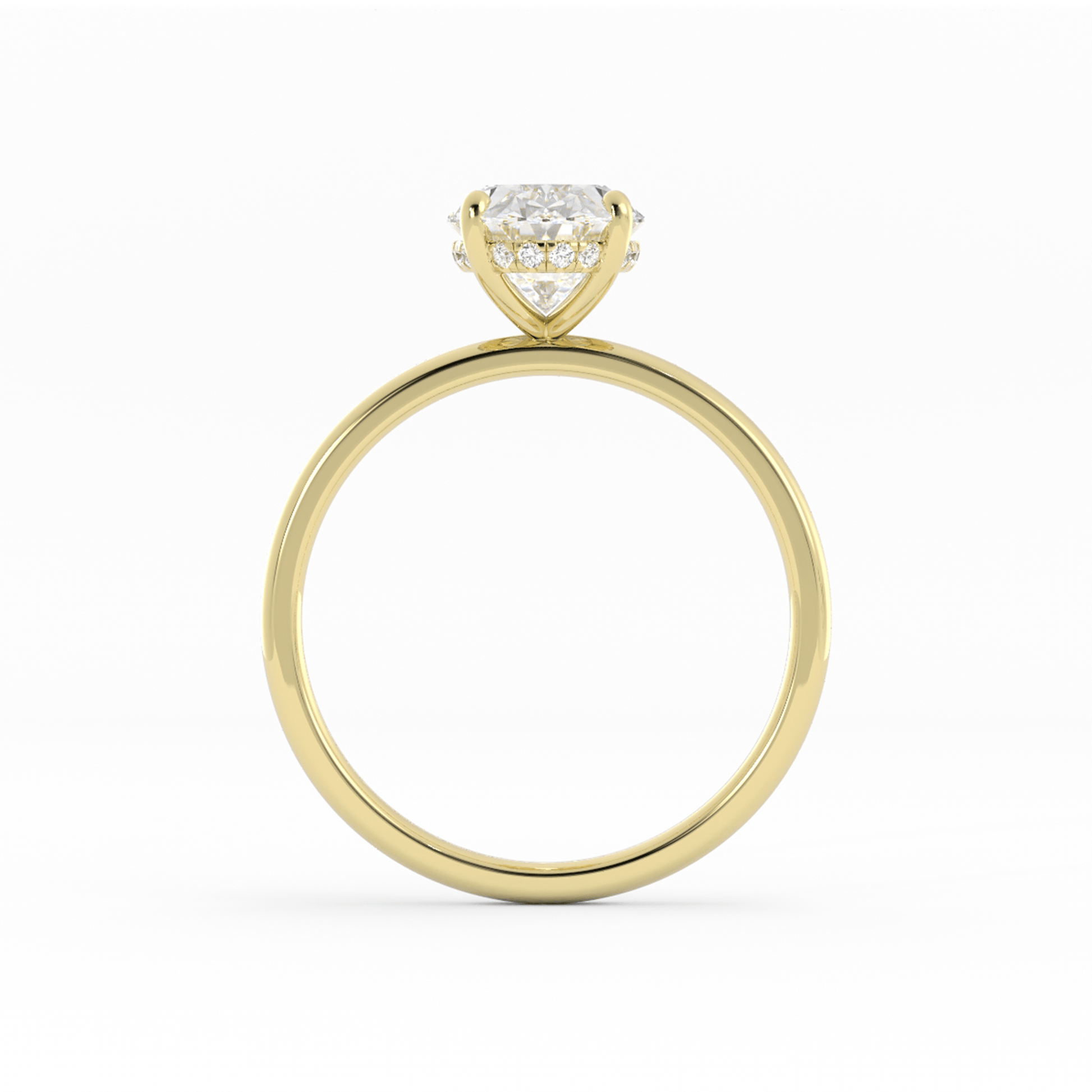 Adding a touch of hidden brilliance, a discreet halo of lab-grown diamonds is nestled beneath the center stone, offering a subtle yet captivating shimmer from every angle. Designed with a sleek, minimalist band, the Mia ring is effortlessly stackable, making it the perfect choice for pairing with wedding bands or other fine jewelry.