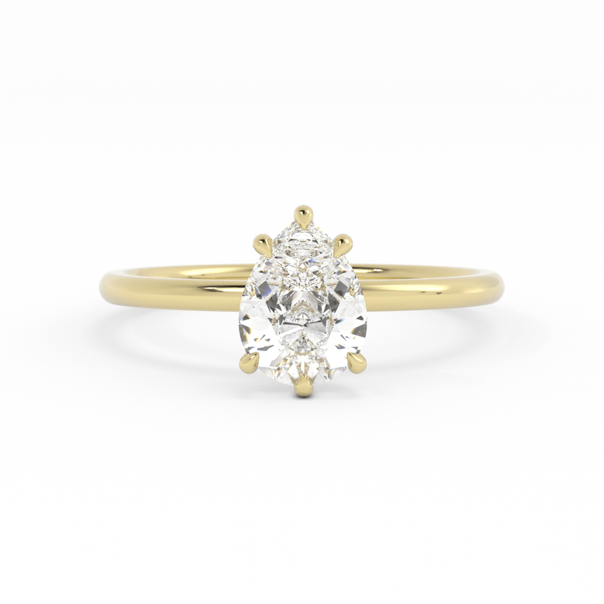 Six Claw Prong Solitaire Pear 14K Yellow Gold Ring