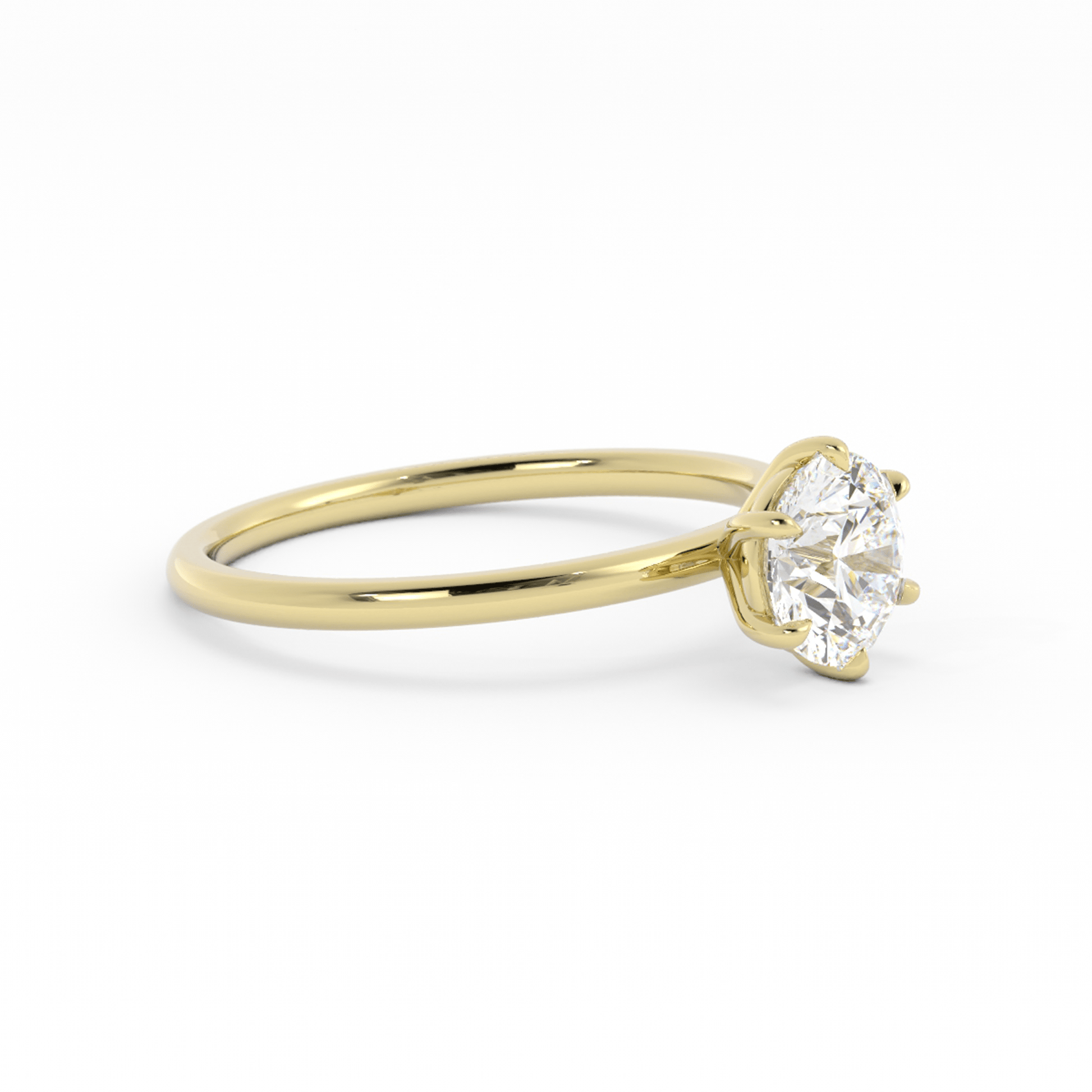 Six Claw Prong Solitaire Round 10K Yellow Gold Ring