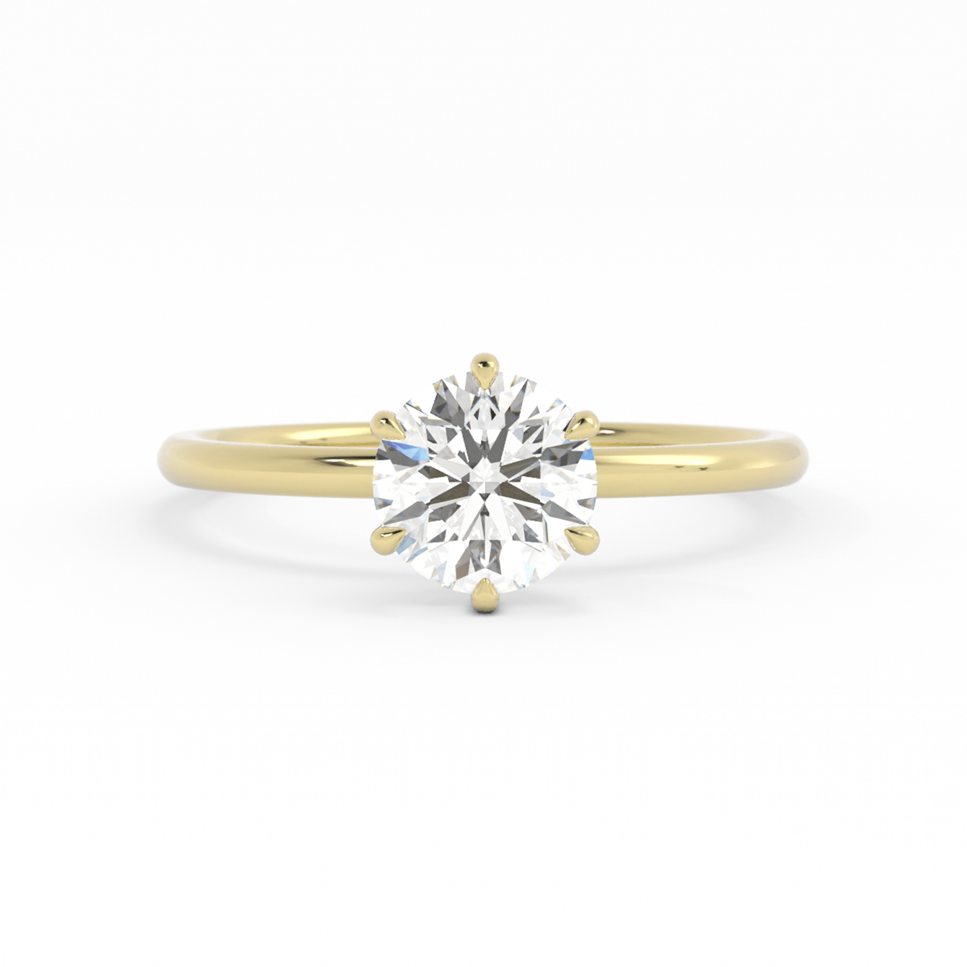 Six Claw Prong Solitaire Round 18K Yellow Gold Ring