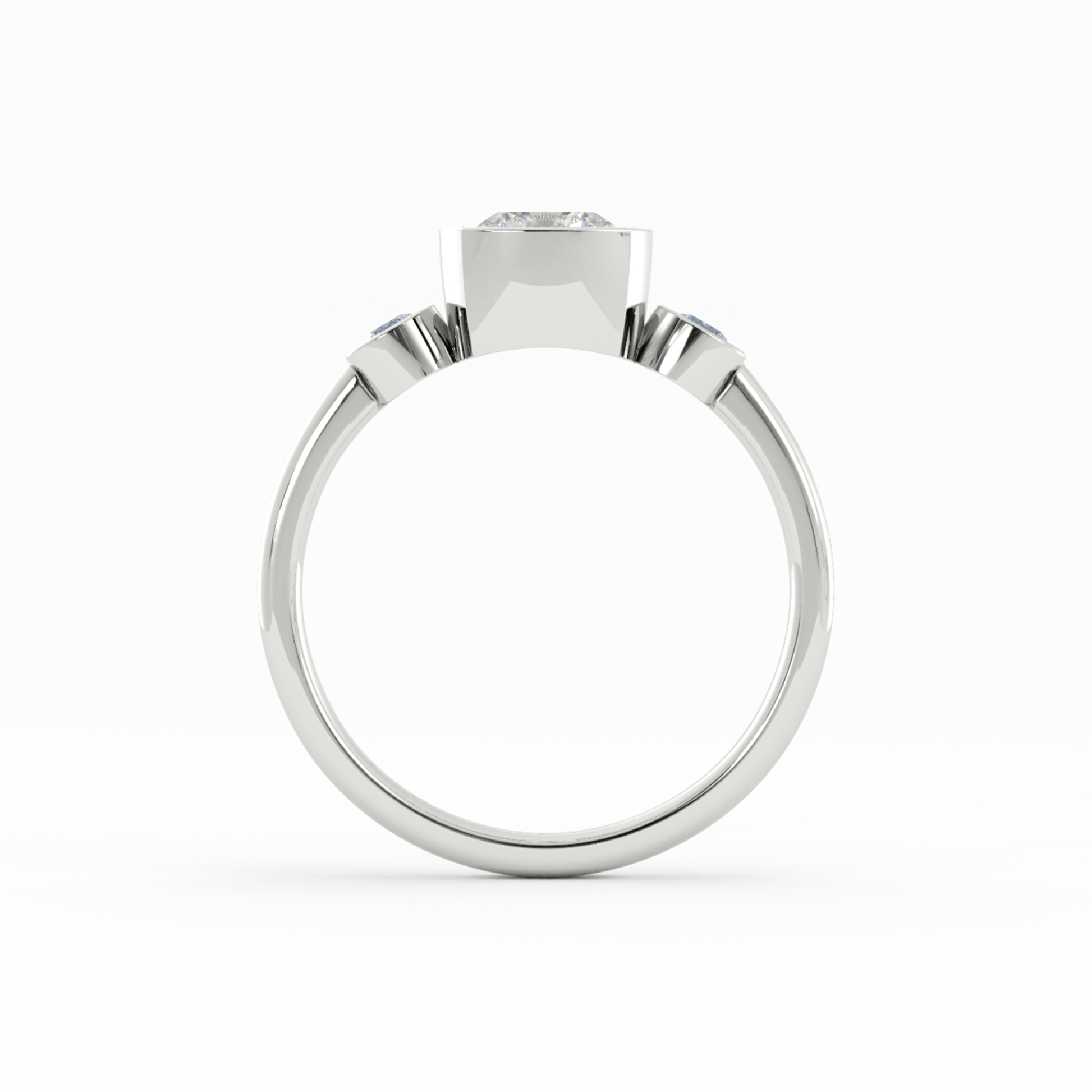 Three Stone Bezel 18K White Gold Ring