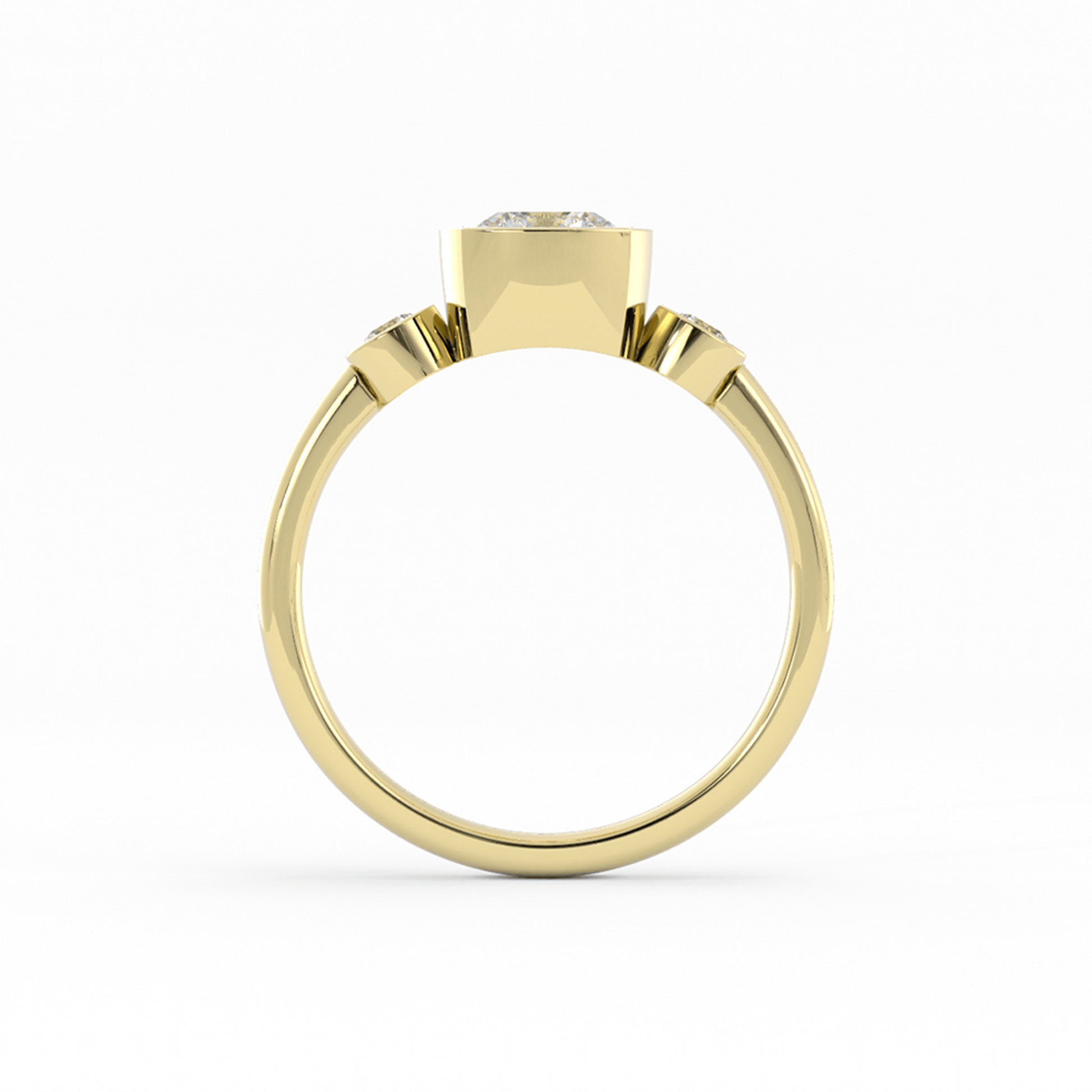 Three Stone Bezel 18K Yellow Gold Ring