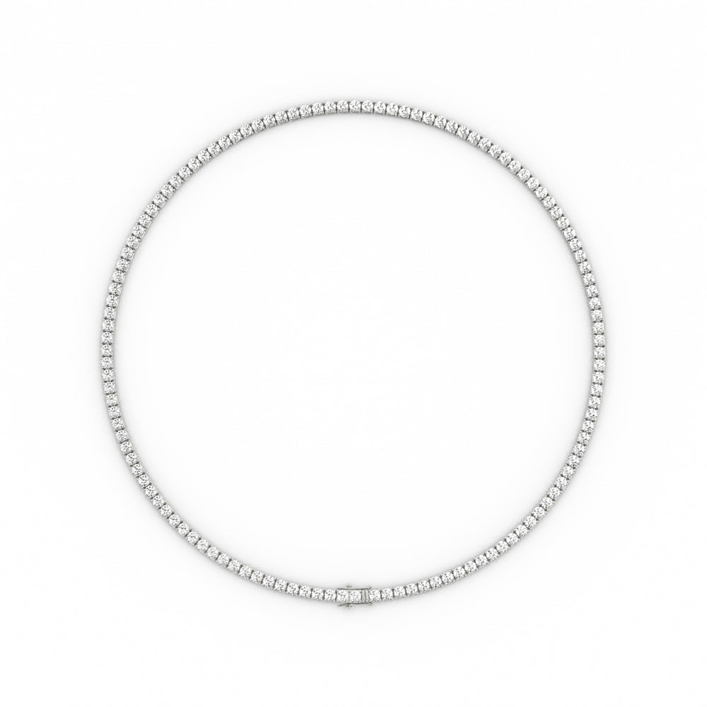 Featuring a continuous line of round-cut moissanite stones, this necklace dazzles with unparalleled brilliance and fire. Perfectly versatile, this necklace complements a variety of necklines and occasions, from casual outings to formal events. Its classic design ensures it remains a timeless addition to any jewelry collection, offering a luxurious appearance without compromising on quality or glamour. Choose this exquisite moissanite tennis necklace for an enduring style that shines bright.
