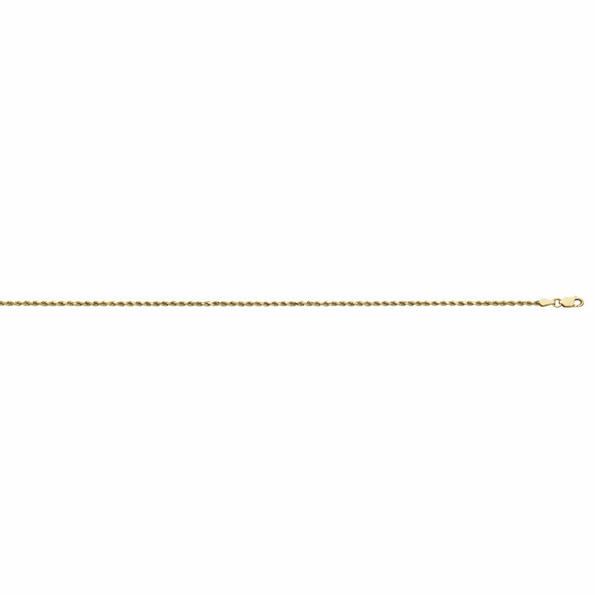Elevate your style with the timeless elegance of our 14K Yellow Gold 7-Inch Rope Chain. Meticulously crafted from genuine 14K yellow gold, this chain showcases a stunning 1.8mm rope design that combines sophistication with durability. Its intricate, twisted pattern reflects light beautifully, adding a touch of brilliance to your look. Perfect as a standalone statement piece or paired with a pendant, this chain sits comfortably on your wrist, making it an ideal accessory for daily wear or special occasions. The secure, easy-to-use clasp ensures a reliable fit, giving you confidence throughout the day.