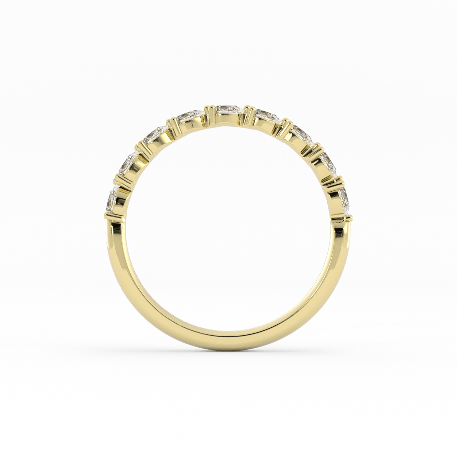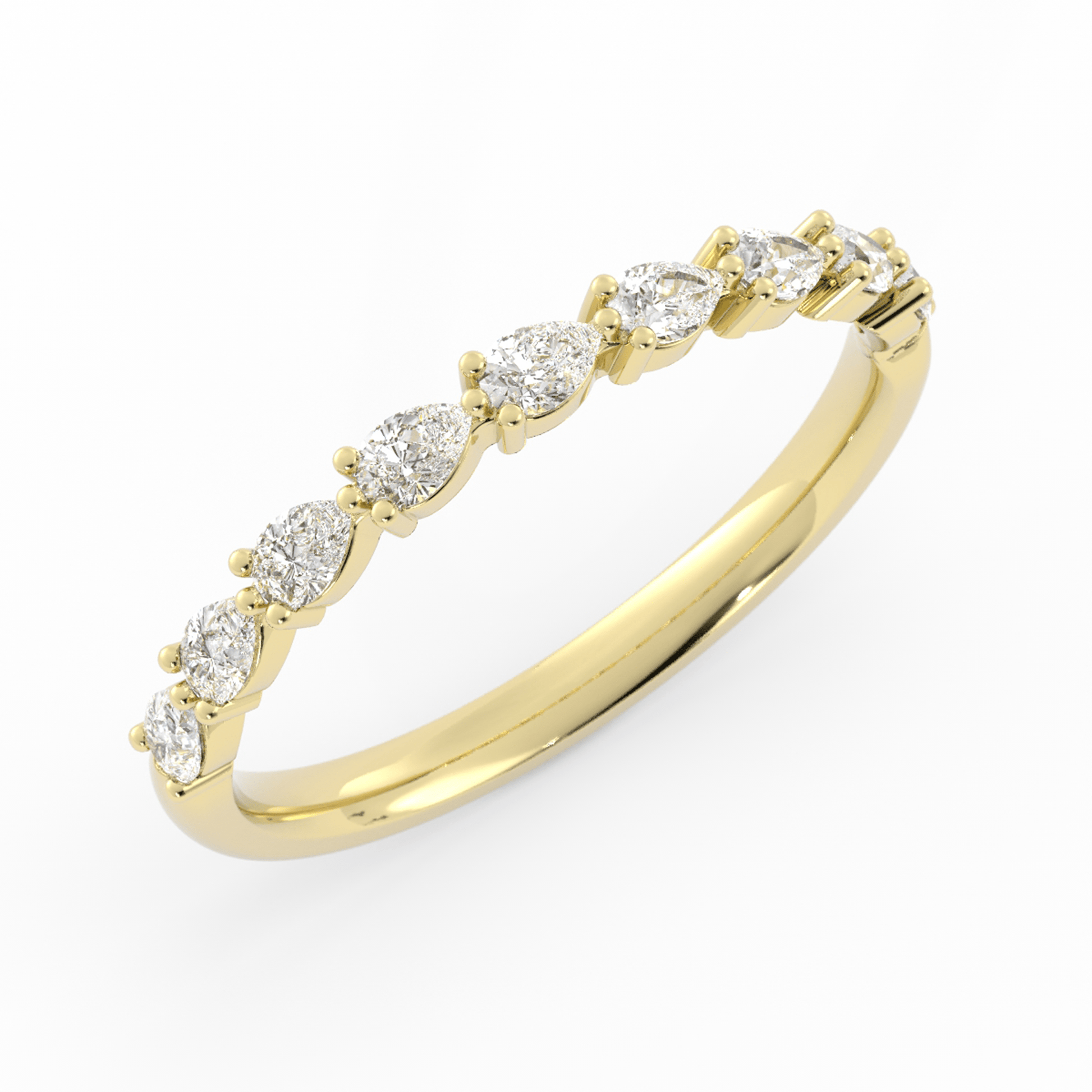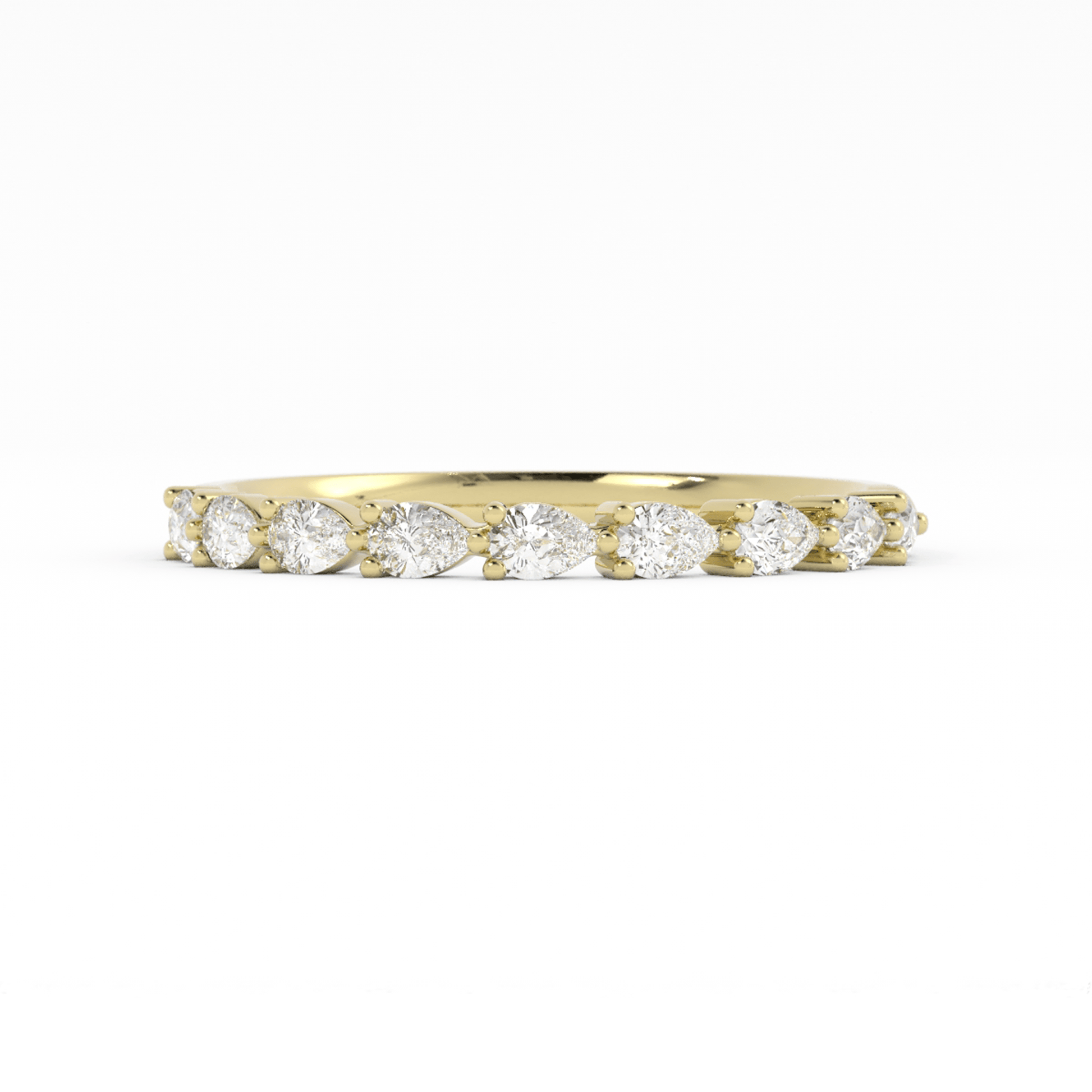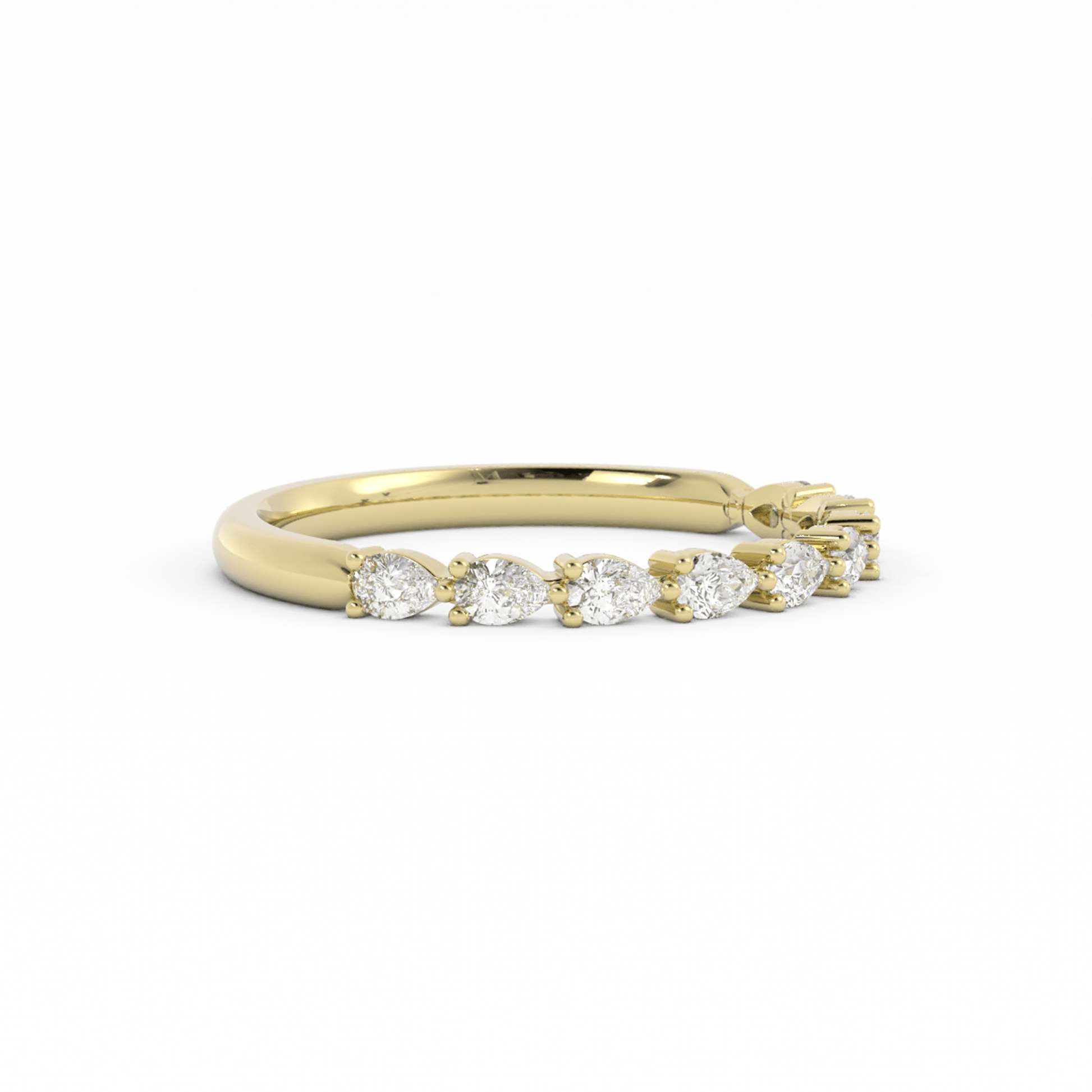 This half-eternity band features pear-shaped stones set on their sides, creating a continuous, flowing line of delicate sparkle. The sideways setting adds movement and sophistication, making it a uniquely elegant choice for everyday wear or special moments.