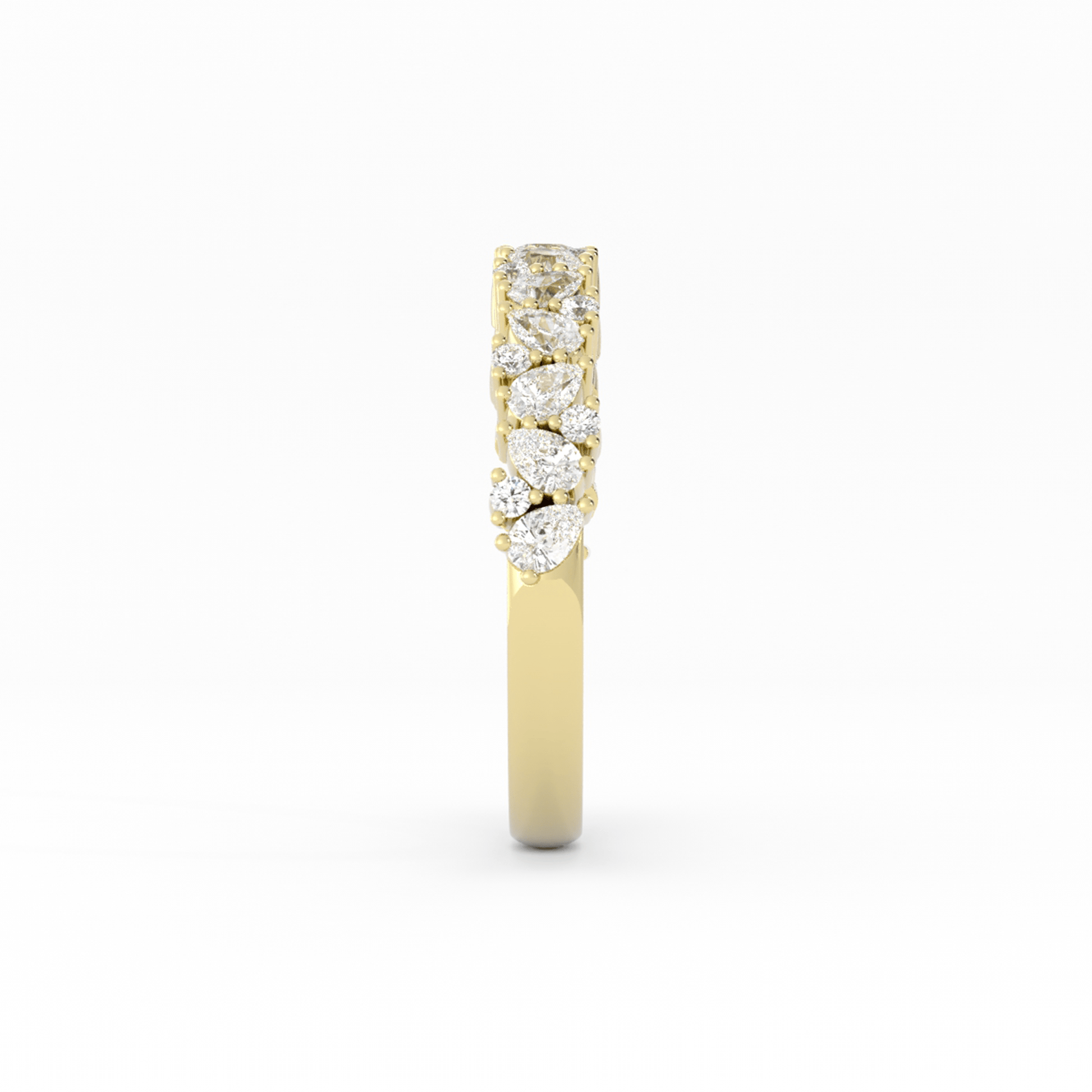 Alternating Rounds and Pears 18K Yellow Gold Ring