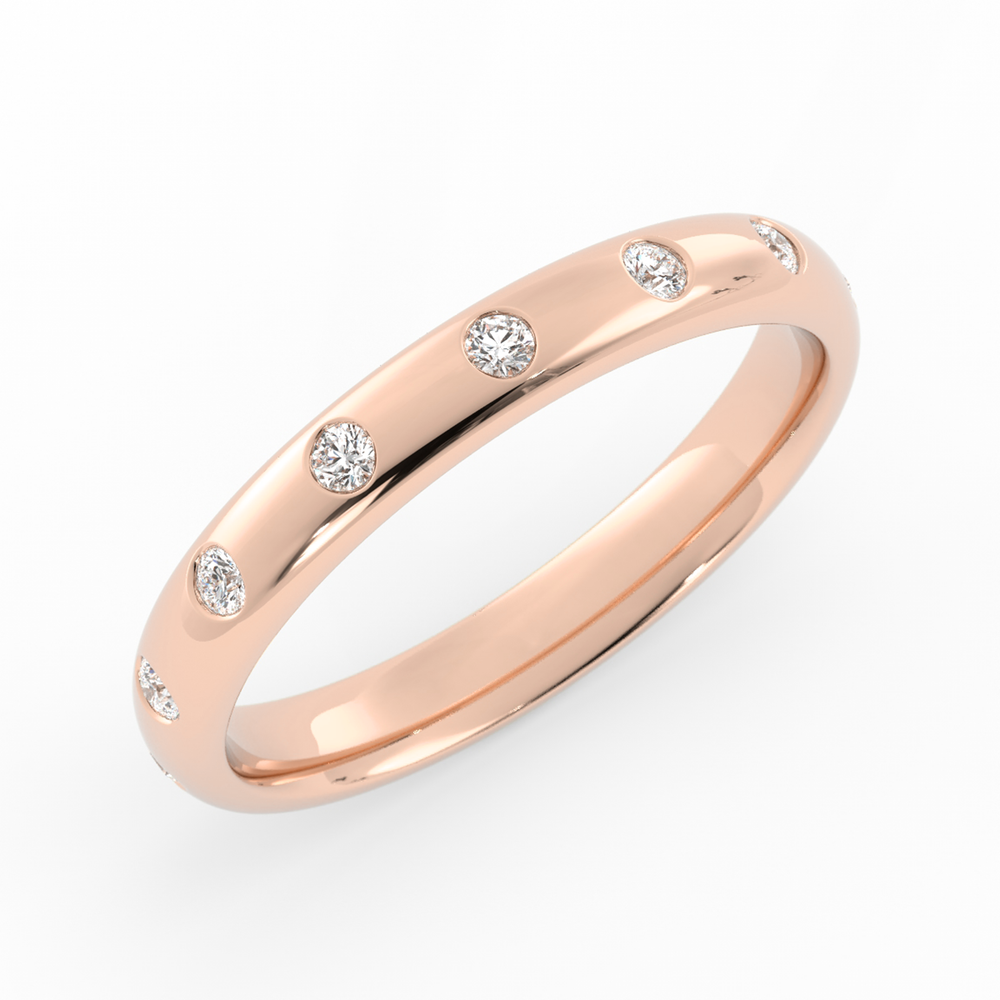 18K Rose Gold Round Half Shank Eyelet Paired Stone Lab Grown Diamond Wedding Band