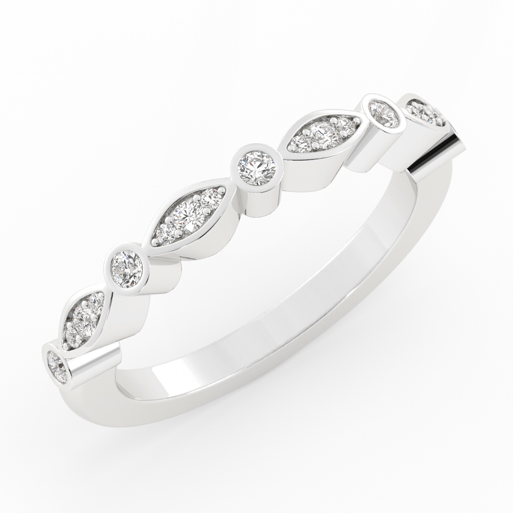 10K White Gold Round Half Shank Eyelet Paired Stone Natural Diamond Wedding Band