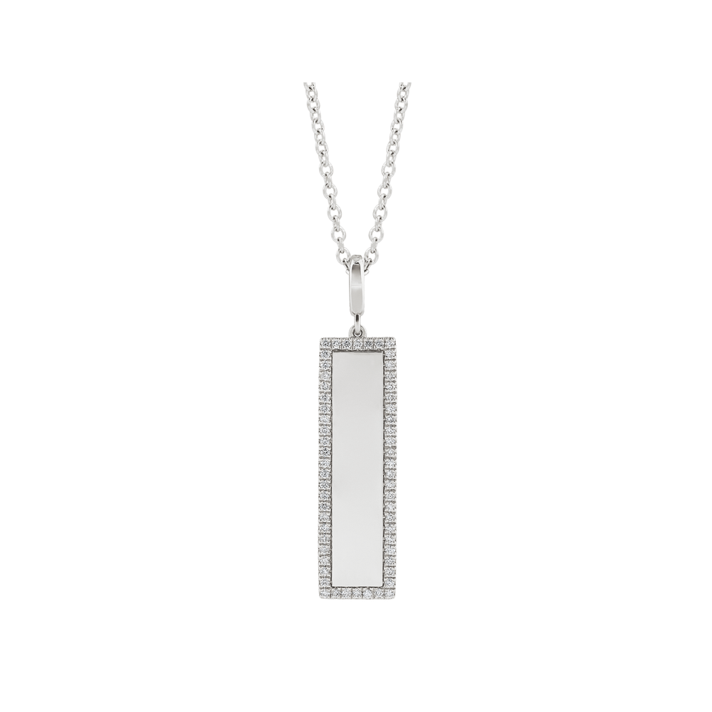 Diamonds trace the perimeter of this vertical bar pendant, illuminating its refined silhouette. A study in balance and brilliance, it embodies modern luxury with timeless allure.