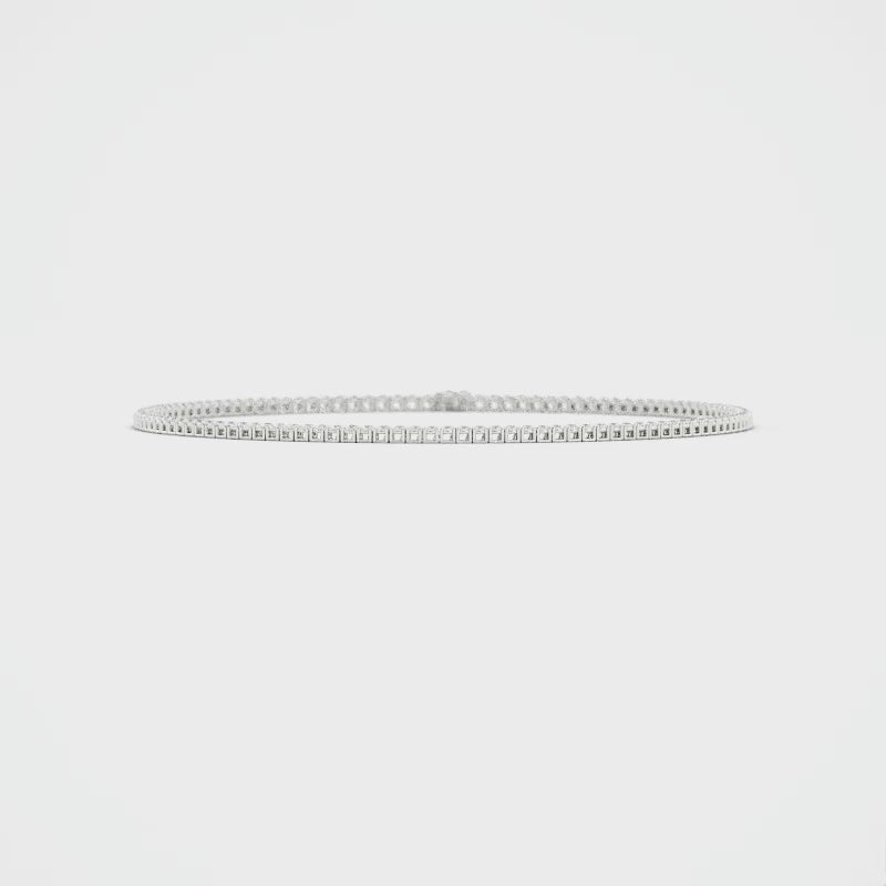 Elevate your style with our 16-inch tennis chain necklace, meticulously crafted with brilliant-cut round D VVS moissanite stones. The rhodium-plated sterling silver gives the bracelet a brilliant, lustrous finish that shines like white gold. Each stone sparkles with exceptional fire and brilliance, rivaling even the finest diamonds. The delicate 3.00mm width adds a touch of elegance, making it suitable for both men and women.Read More