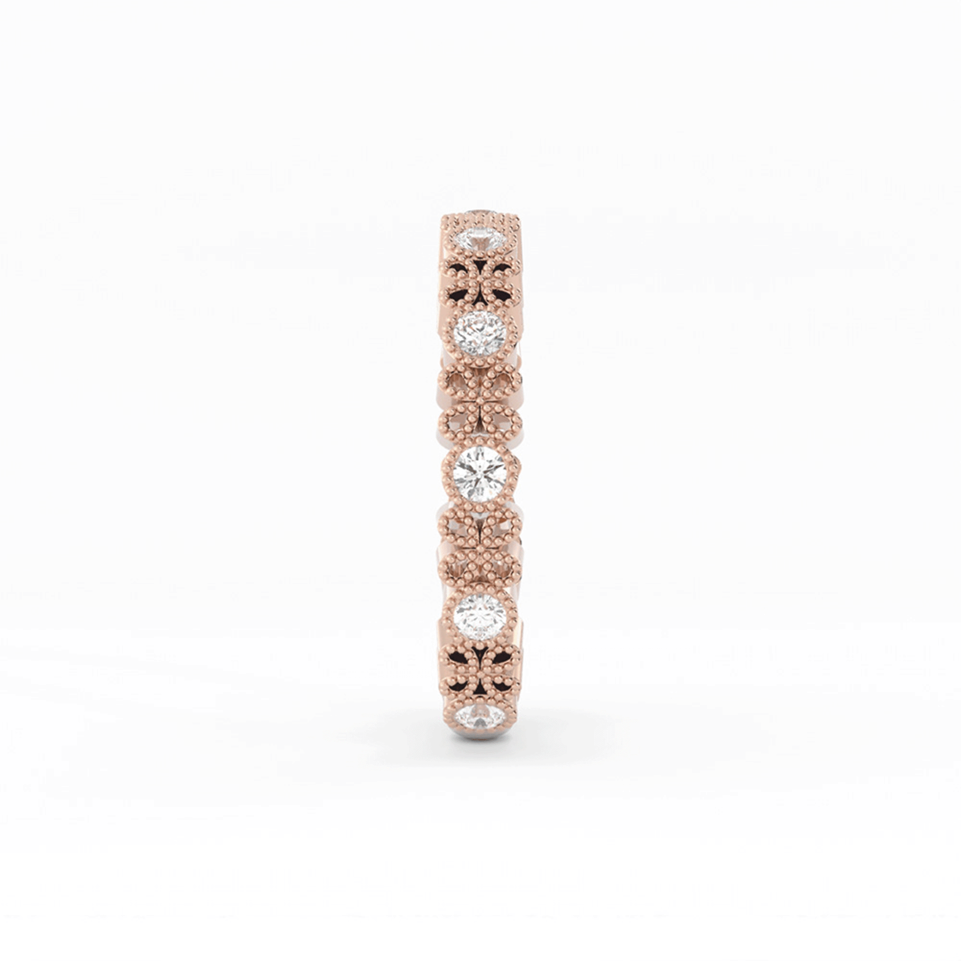 14K Rose Gold Round Three Quarter Petal and Milgrain Lab Grown Diamond Wedding Band