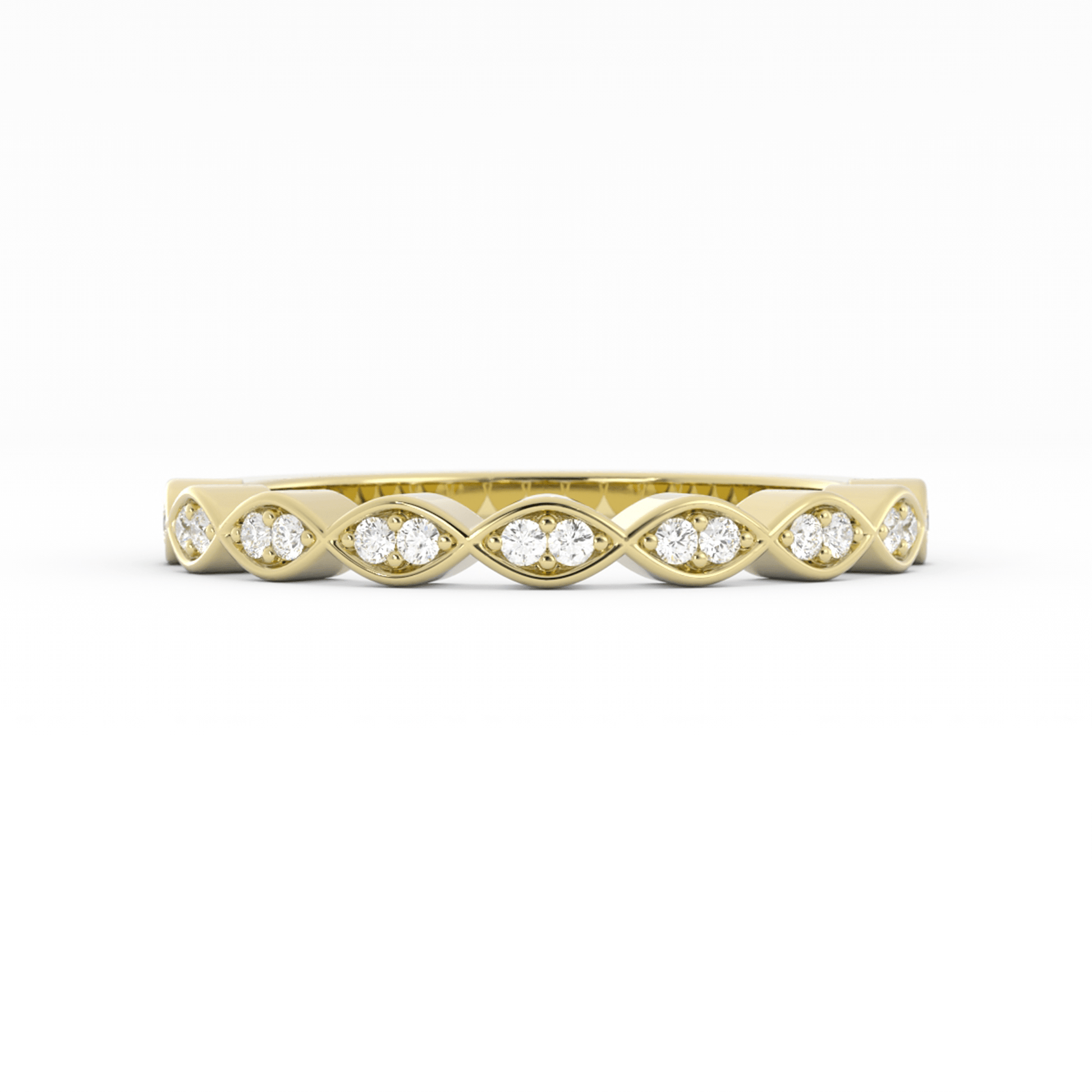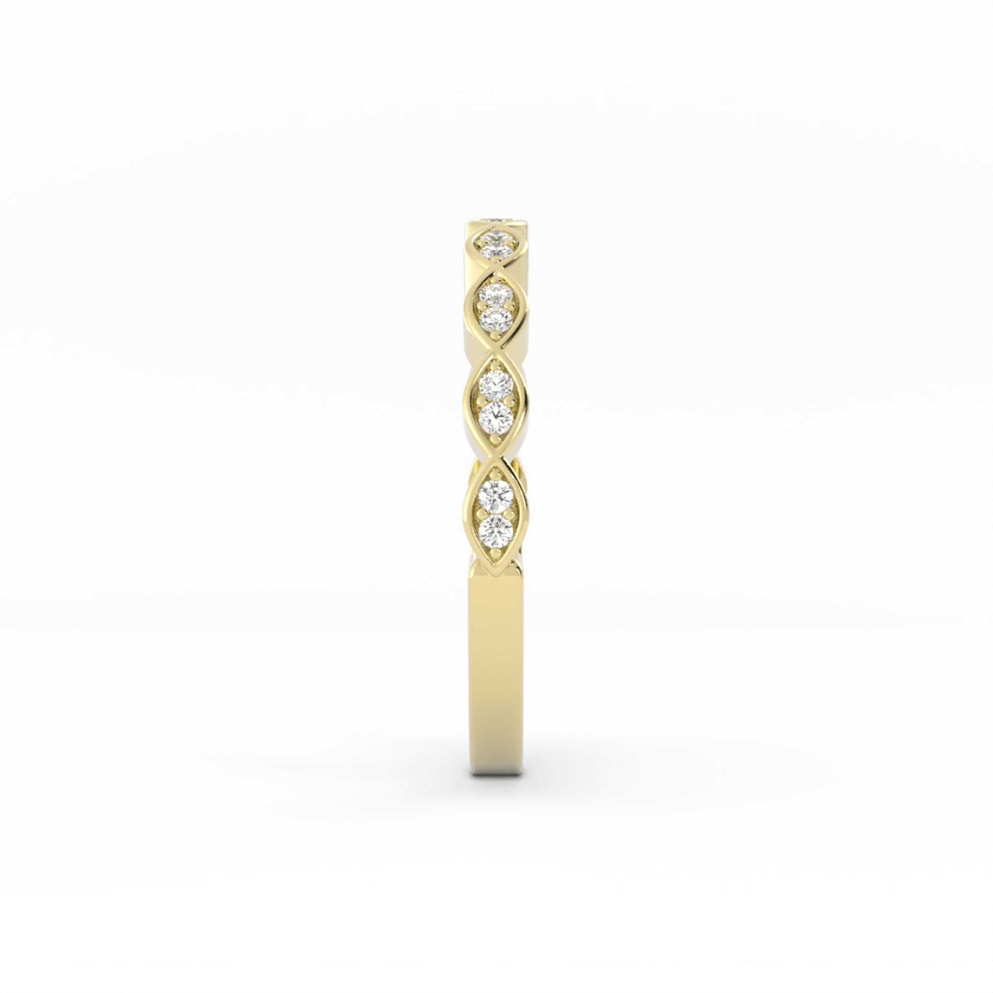 10K Yellow Gold Round Half Shank Eyelet Paired Stone Lab Grown Diamond Wedding Band