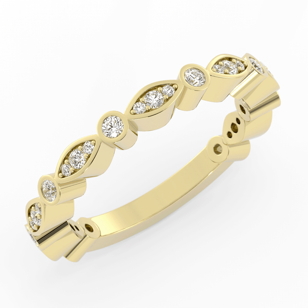10K Yellow Gold Round Three Quarter Petal and Milgrain Lab Grown Diamond Wedding Band