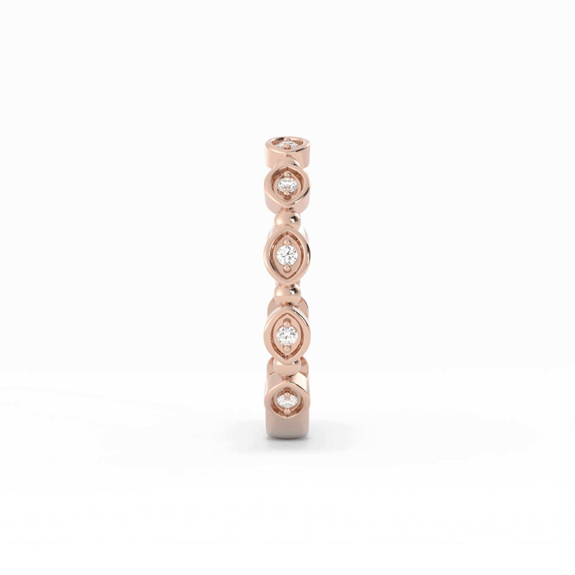 10K Rose Gold Round Three Quarter Alternating Eyelet Natural Diamond Wedding Band