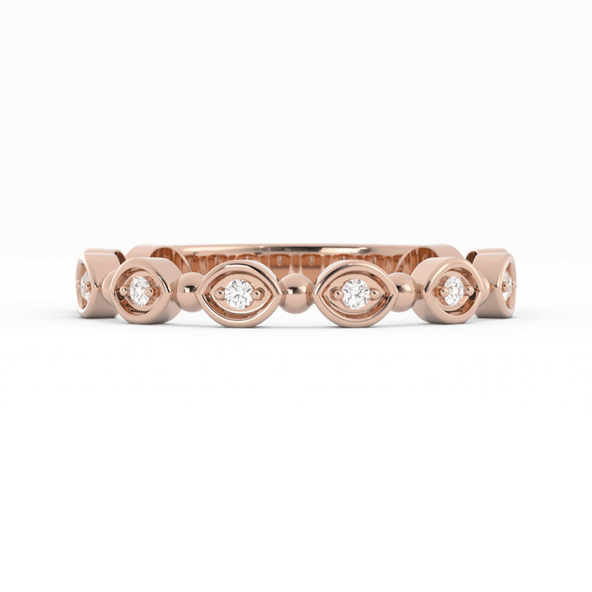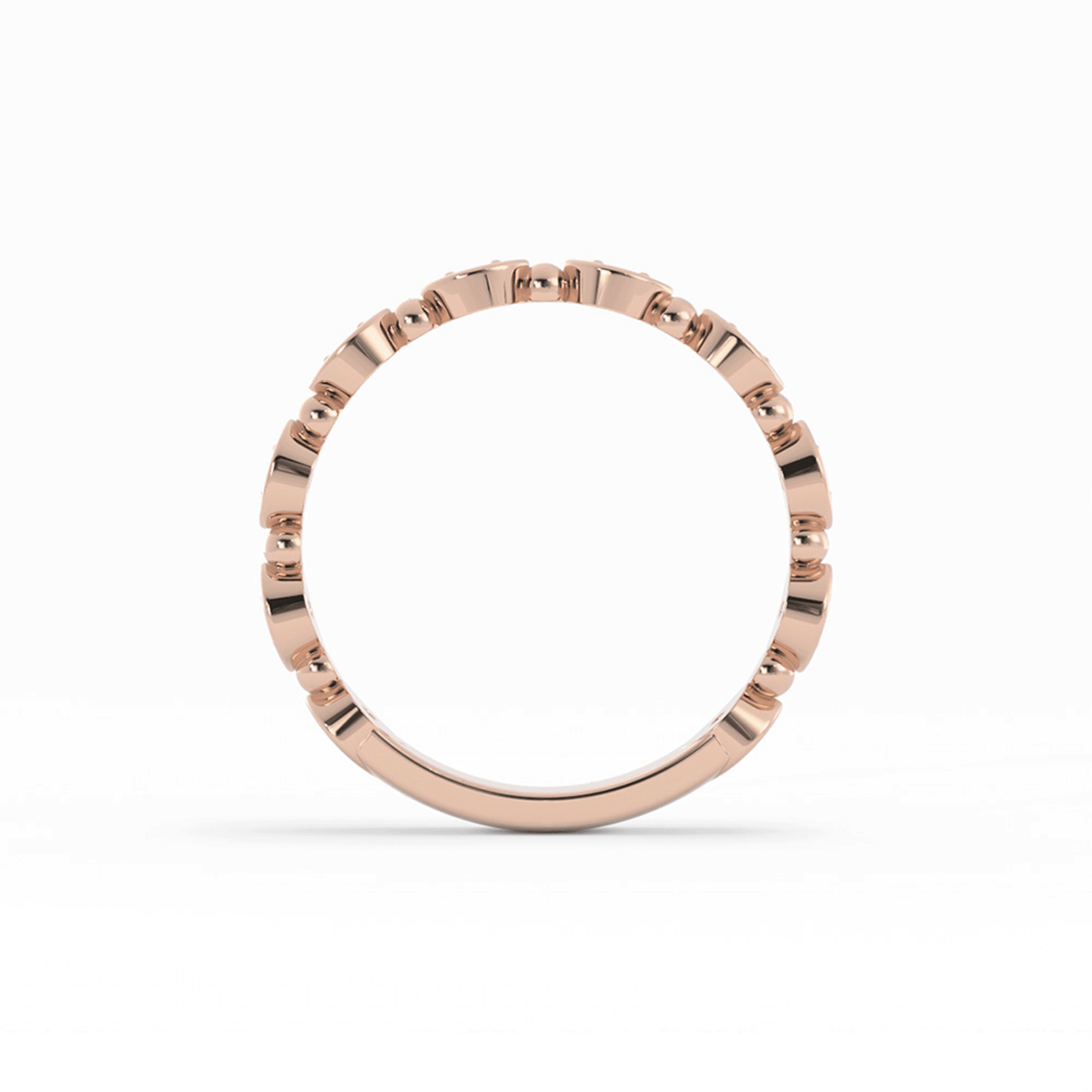 14K Rose Gold Round Bead and Eyelet Natural Diamond Wedding Band