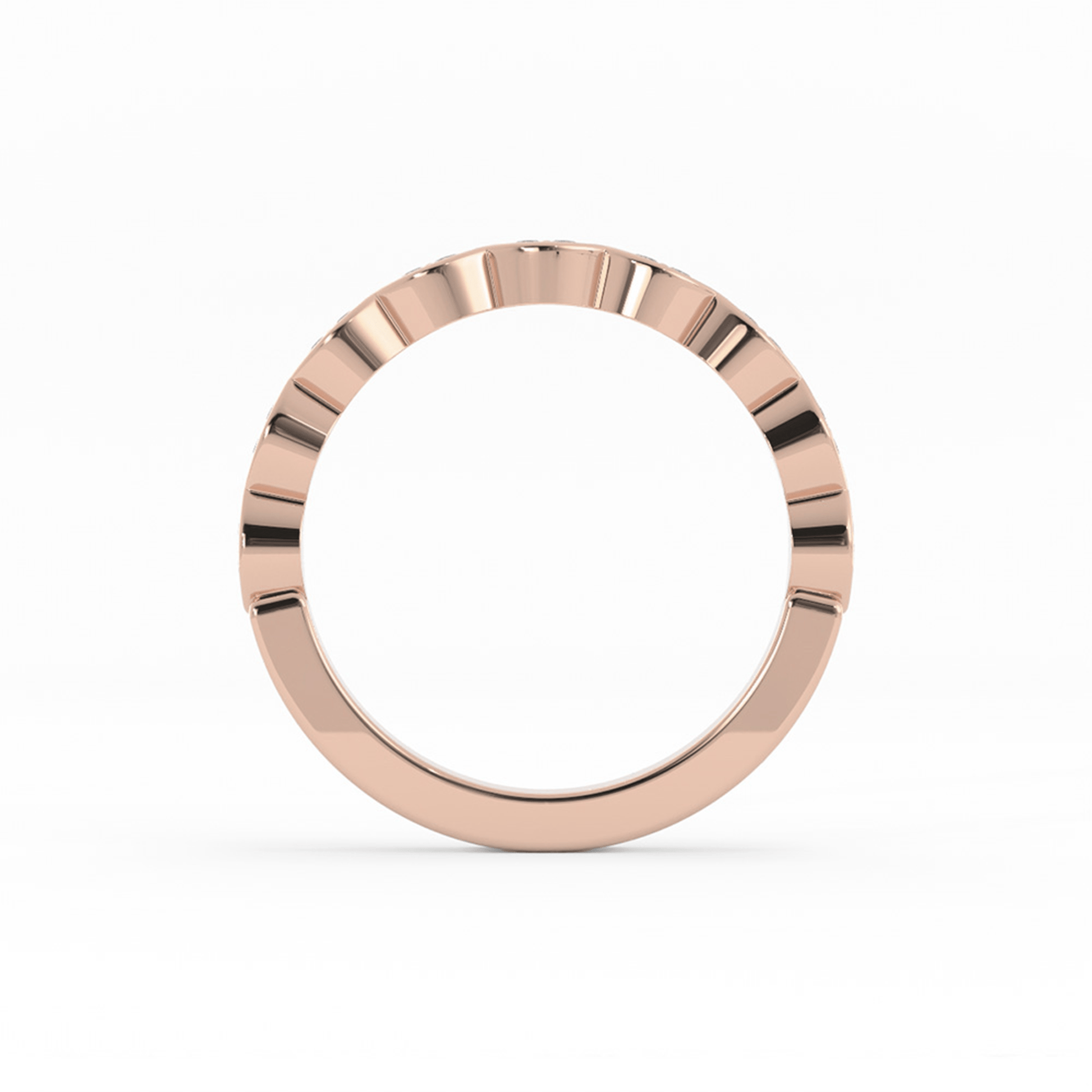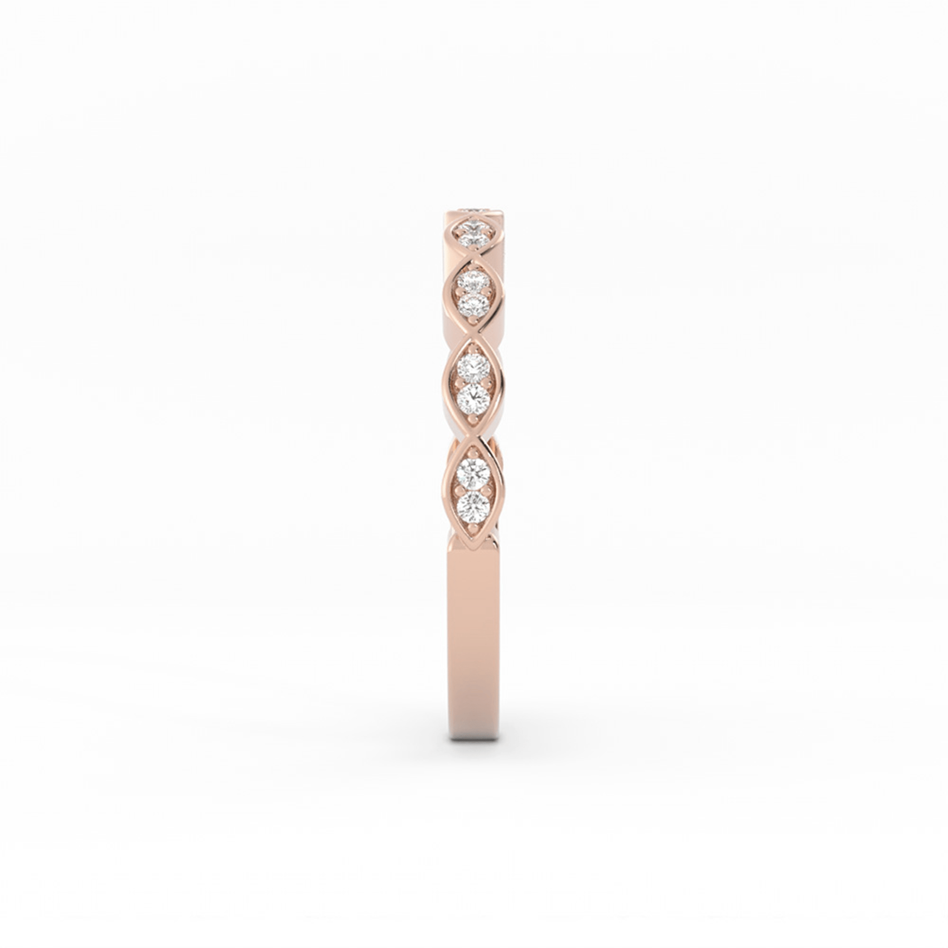 14K Rose Gold Round Half Shank Eyelet Paired Stone Lab Grown Diamond Wedding Band
