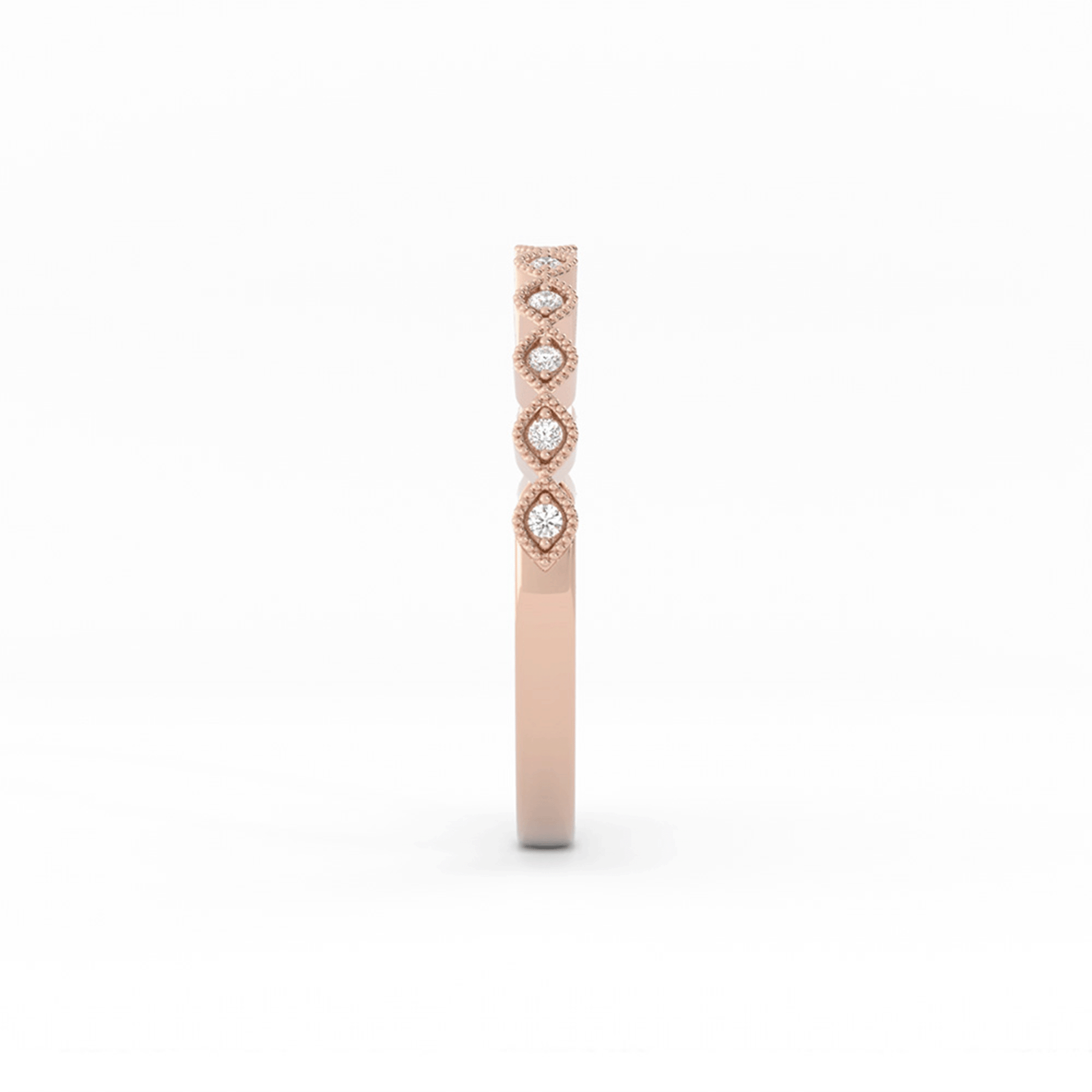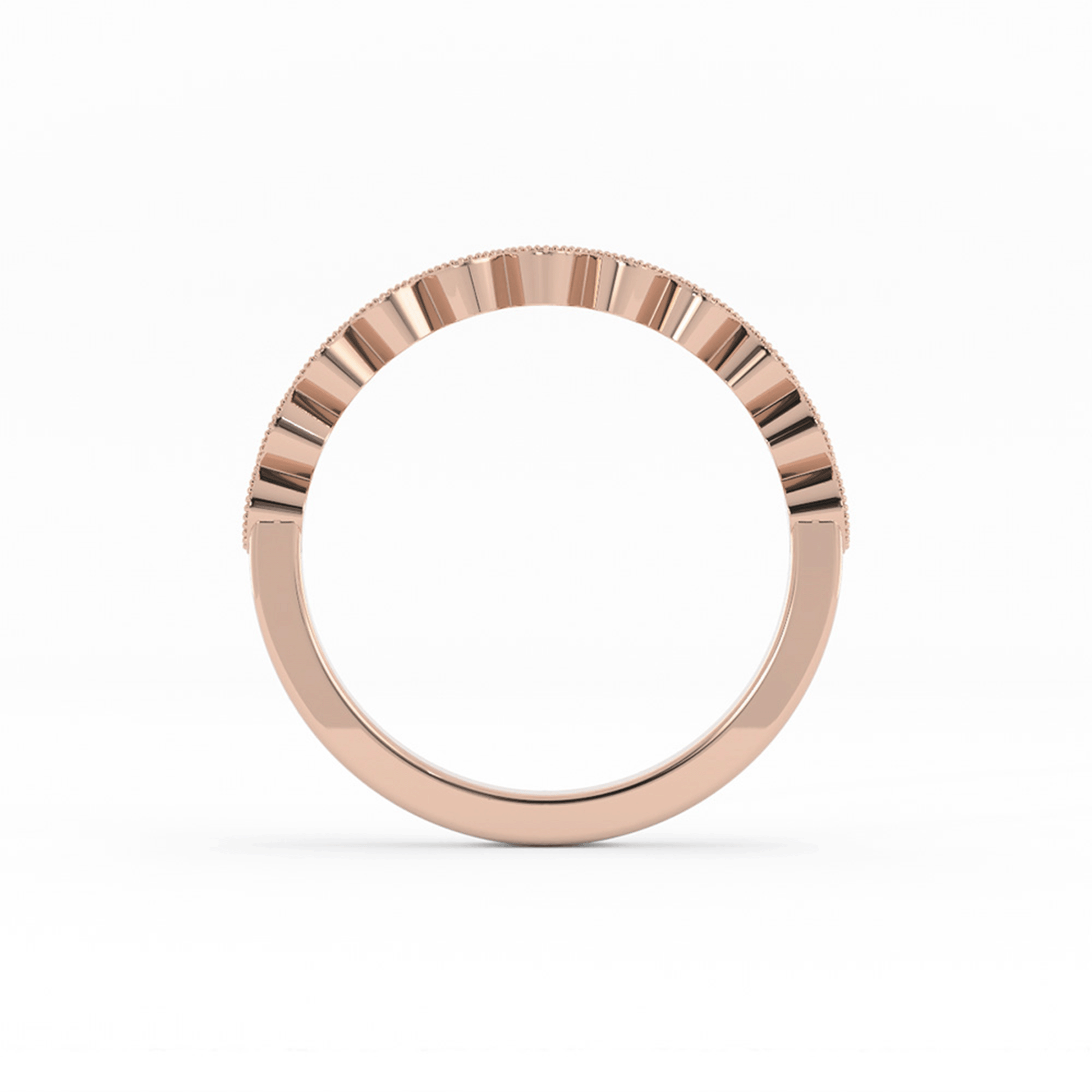 14K Rose Gold Round Half Shank Eyelet Milgrain Lab Grown Diamond Wedding Band