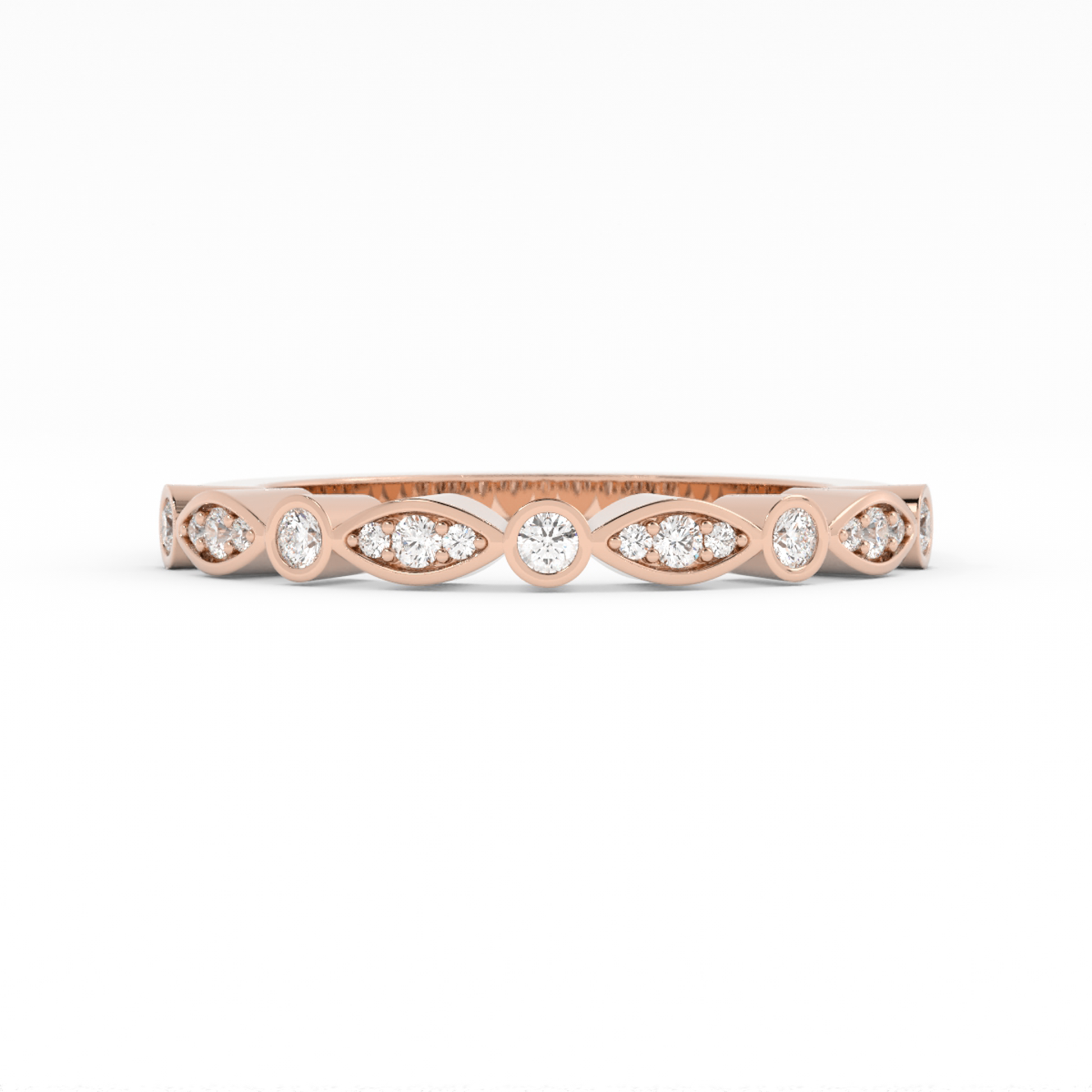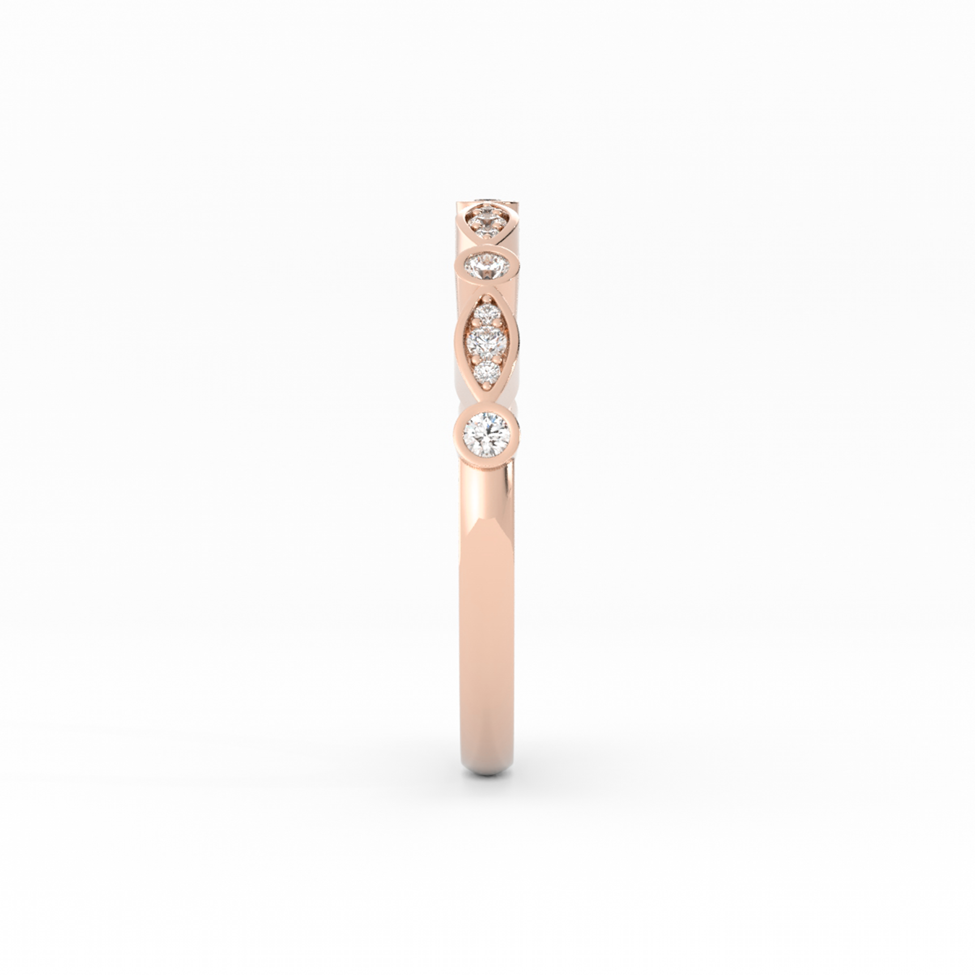 14K Rose Gold Round Three Quarter Alternating Eyelet Lab Grown Diamond Wedding Band